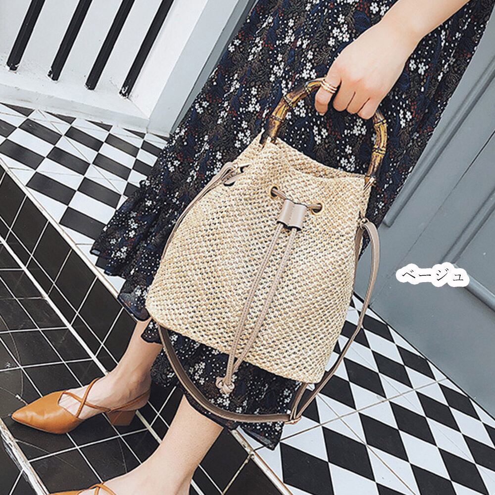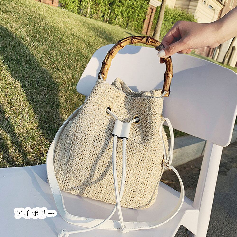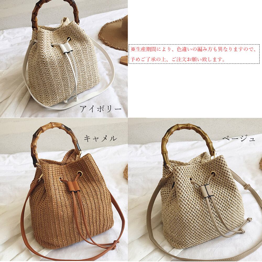 ショルダー 夏 レディース 編み 籠バッグ 斜めかけ ナチュラル ペーパー 遠足 ストローバッグ バケット鞄 旅行 おでかけ 肩掛け涼しげに編まれたナチュラル素材の2way仕様巾着かごバッグバンブーの持ち手とストロー素材が季節感をプラスショルダーは取り外し可能で、ハンドバッグとしても使える、上部の調節紐を引っ張ると巾着型になる、大人スタイルに合う様クラス感を演出したこだわりカジュアルスタイルは勿論、フェミニン、上品と幅広く使いまわせる優秀アイテム素材:ペーパー+ポリエステルカラー:ベージュ/アイボリー/キャメルサイズ:高さ:約26cm 底横幅:約24cm マチ:約14cm 持ち手:約36cm(調節不可、取り外し不可) ショルダー:約60-120cm(調節可、取り外し可)重さ:約441g裏地:あり内ポケット:あり生産国:中国※すべて平置きサイズです(採寸方法違いより、多少の誤差がございますので、ご了承ください)。