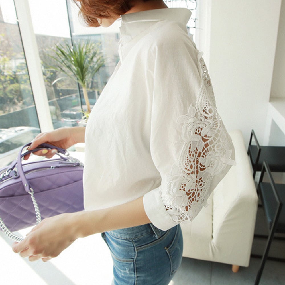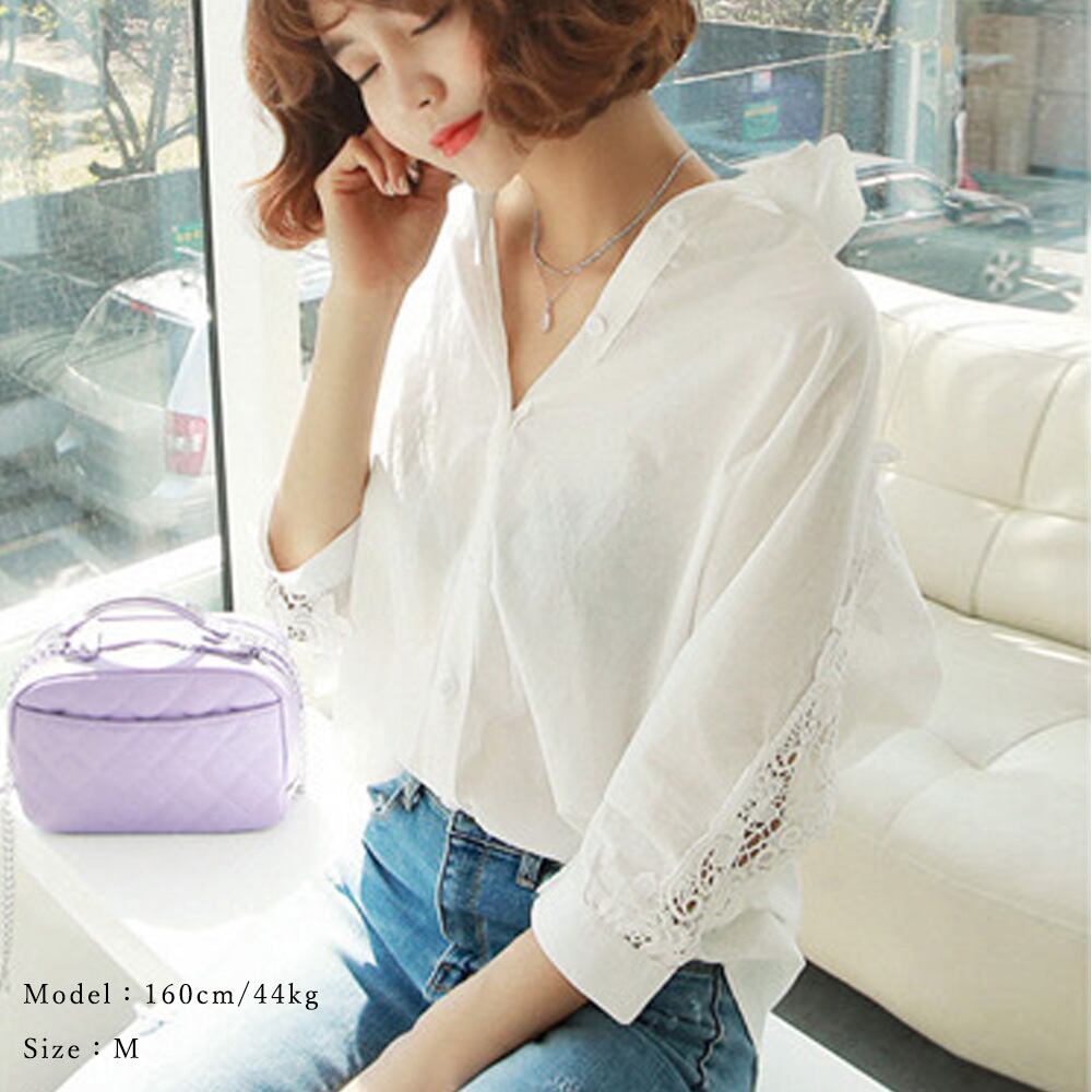 シャツブラウス レディース レース切り替え ブラウス ドルマンスリーブ