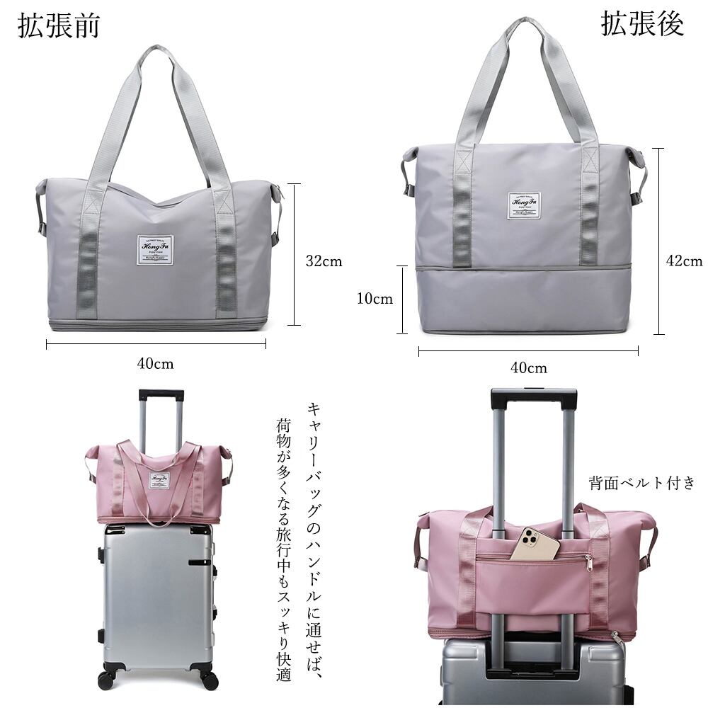 レディース 大容量 旅行バッグ ボストンバッグ 拡張ファスナー 男女兼用 旅行カバン 軽量トートバッグ 肩掛け バッグ スポーツジムバッグおしゃれなシンプルデザイン、コーデにも合わせやすい無地トラベルバッグ。