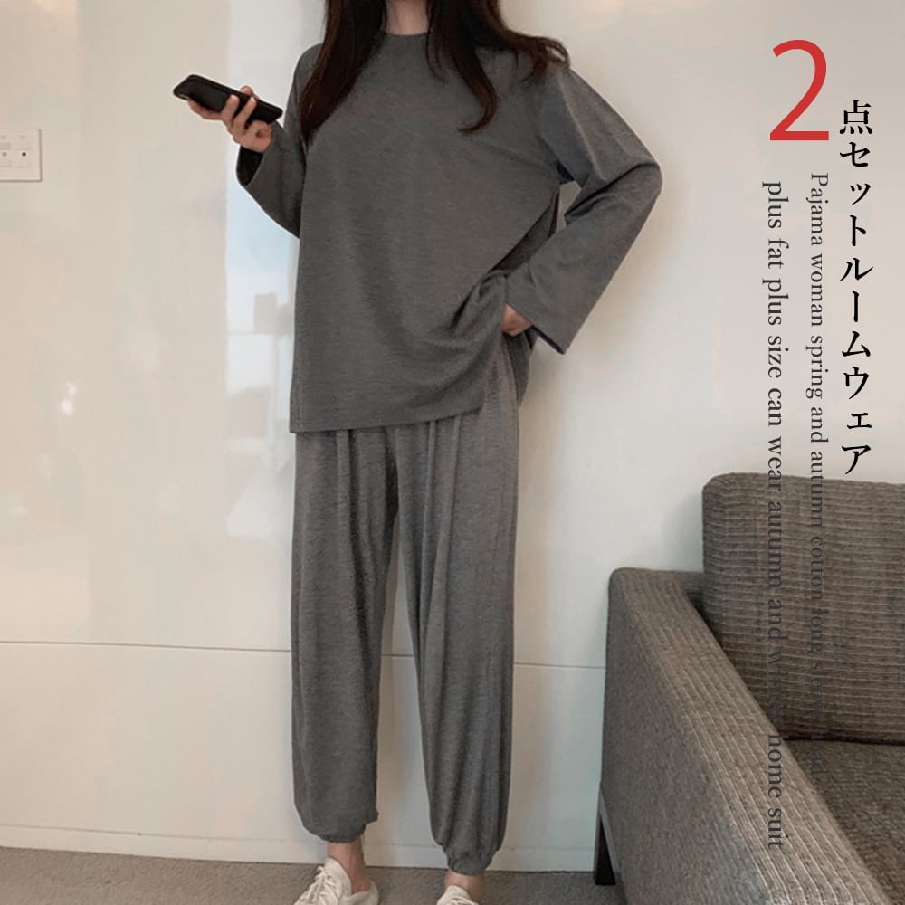 ほどよい伸縮性があるので着心地の良いルームウェア2点セット肌触りの良い柔らかな風合いが特徴半袖を着るにはちょっと肌寒いなという時にオススメ素材:綿30%+ポリエステル70%カラー:ダークグレーサイズ:ワンサイズ(L)トップス:着丈:約65cm 肩幅:約50cm 袖丈:約51cm ゆき:約76cm 身幅:約56cm 胸囲:約112-130cmボトムス:着丈:約93cm 股下:約62cm ウエスト(ゴム仕様):約60-94cm ヒップ:約98-130cm もも周り:約58cm裏地:なし伸縮性:あり透け感:なし生産国:中国※すべて平置きサイズです(採寸方法違いより、多少の誤差がございますので、ご了承ください)。
