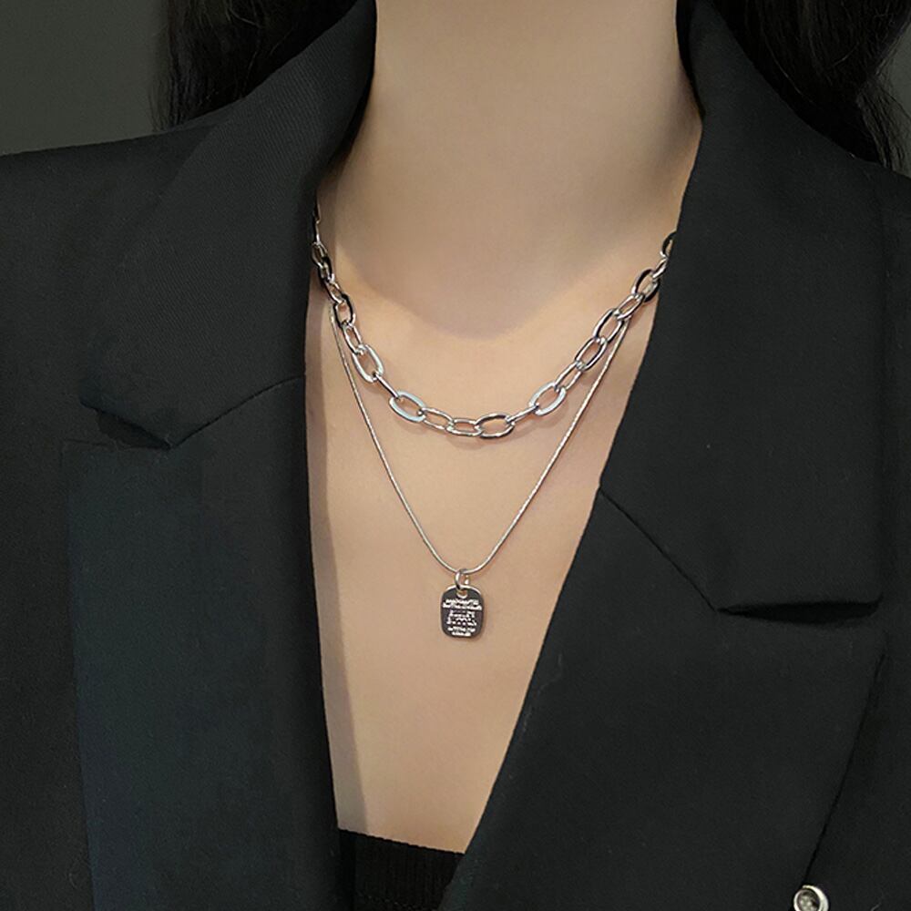 2連ネックレス レディース 韓国アクセサリー オフィスカジュアル 文字モチーフ風ペンダント プチプラアクセサリー お洒落首飾り大人きれいめ 誕生日プレゼント女 オシャレギフト彼女2種類のチェーンがメンズライクのカッコ良さとレディライクのフェミニンさを同時に演出、服の上でもしっかり存在感を発揮する二連ネックレスアジャスター付きなので、その日の気分に合わせて長さを調節、自分へのご褒美はもちろん、大切な方へのプレゼントにもおすすめシンプルコーデとの相性が抜群、普段使いでもオフィシャルシーンでも、1本持っていればどんなファッションでも困らない重宝アイテム素材:合金カラー:ゴールド/シルバーチェーン:[短]約46cm/[長]約51cm(アジャスター含む)生産国:中国※包装に関しての注意点:こちらの商品は激 安で販売しているため、化粧箱は付いていませんが、商品に傷付かないよう簡易包装で発送とさせていただきます。