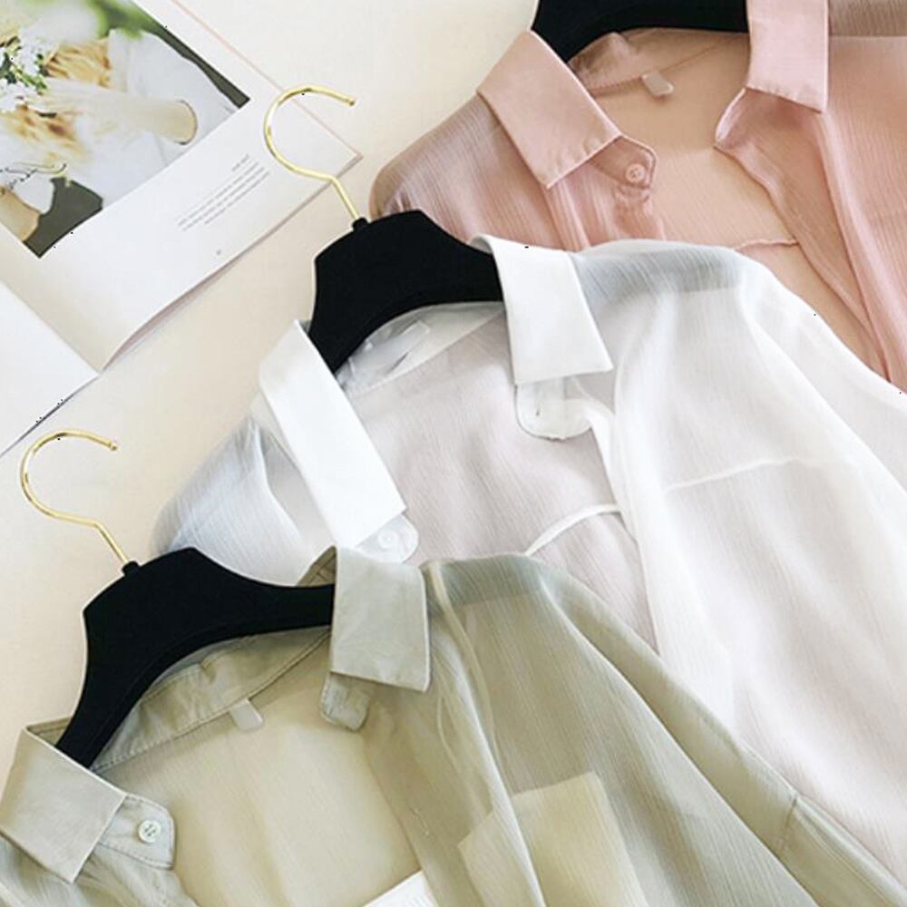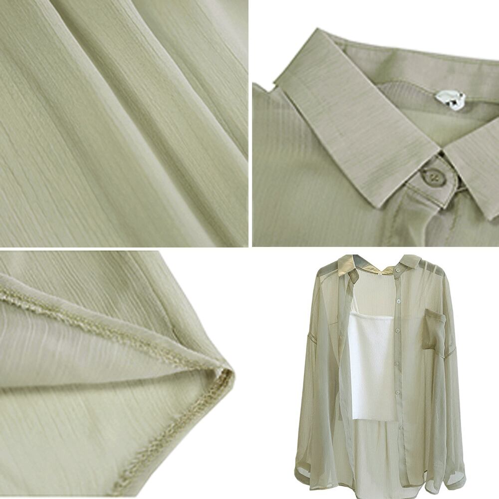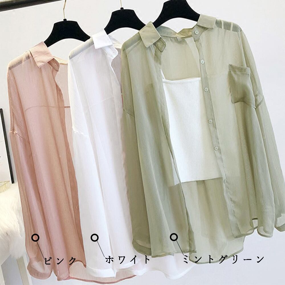 カーディガン 春夏 レディース シフォンブラウス 長袖 ロング丈トップス