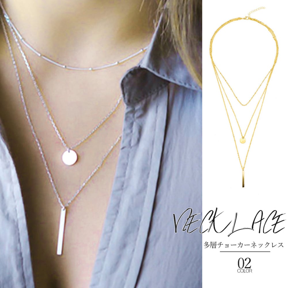 3連 チェーンネックレス レディース チョーカーネック 首飾り ペンダント
