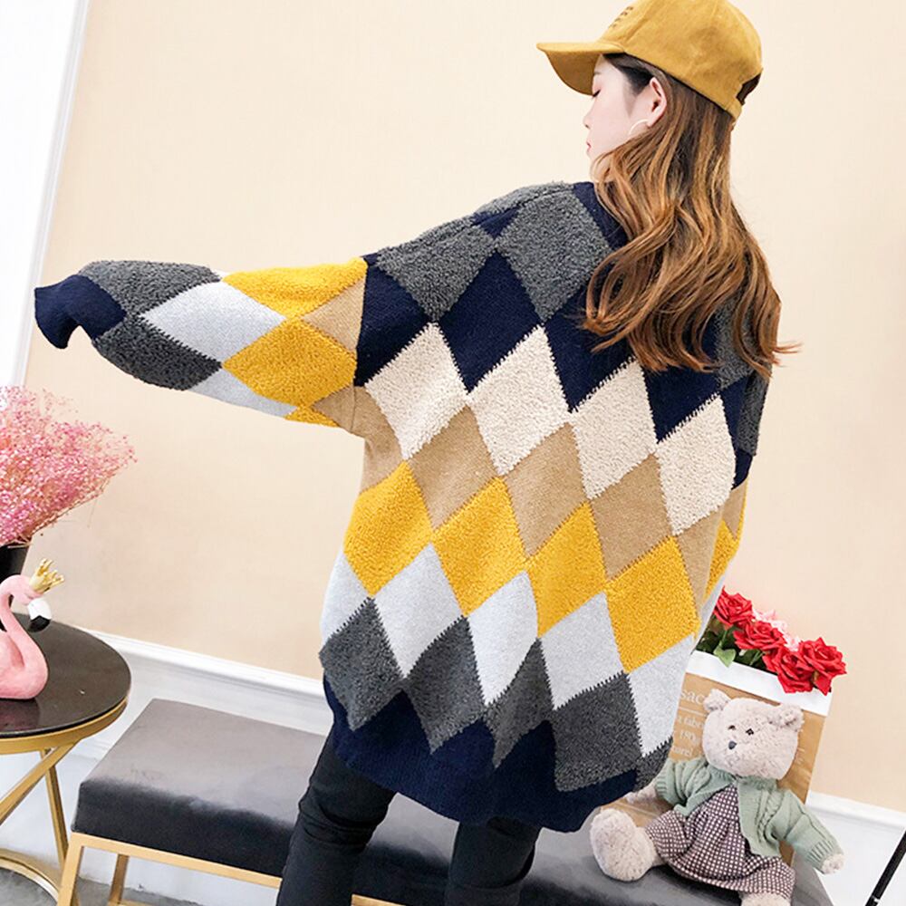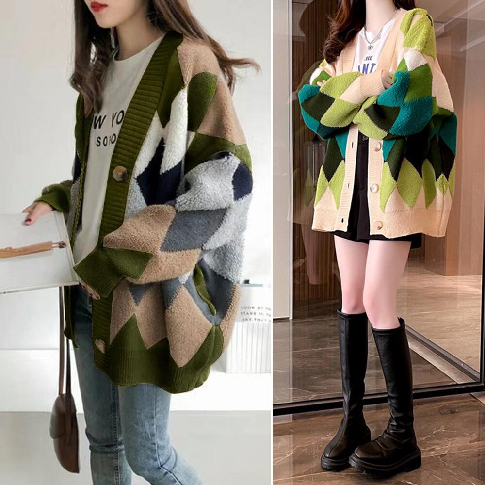 配色ニットカーディガン 韓国風レディース