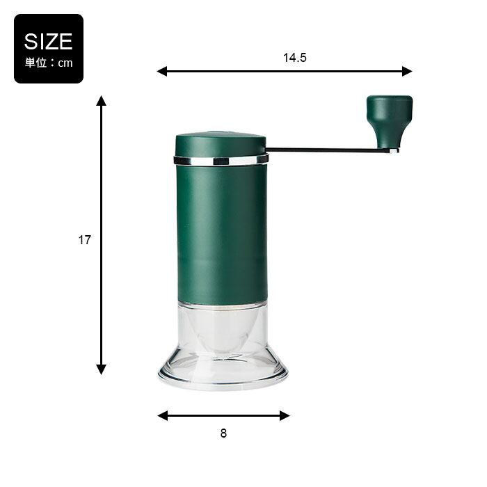 ■製品サイズ約14.5×8cm[高さ]約17cm■重量約230g■容量[容量]約40ml[お茶葉容量]約52g■材料[上フタ]ポリプロピレン[ハンドル]鉄(クロームメッキ)、ポリプロピレン[本体]ポリプロピレン、ポリアセタール、ステンレス、鉄(三価ブラック)[中フタ・容器]AS樹脂[刃部]セラミック磁器[滑り止め]熱可塑性エラストマー■生産国日本