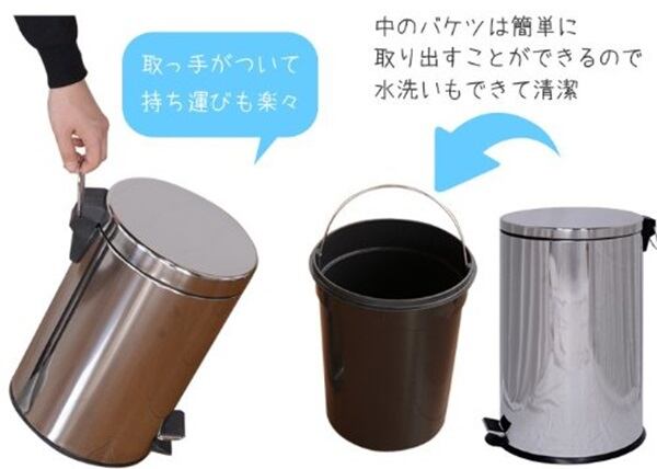中のゴミ箱には取っ手が付いているので、ゴミを取り出す時に手が汚れてしまう心配もありません。