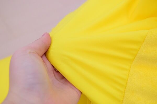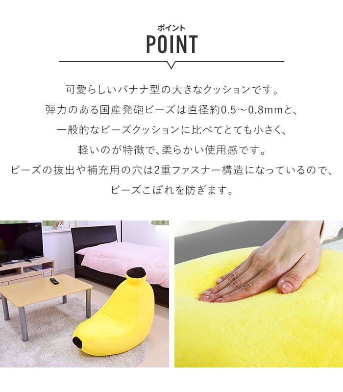 側面と底面に伸びにくいソフトベルボア生地を使用することで、バナナの形をそのままに、柔らかい触り心地を維持しています。