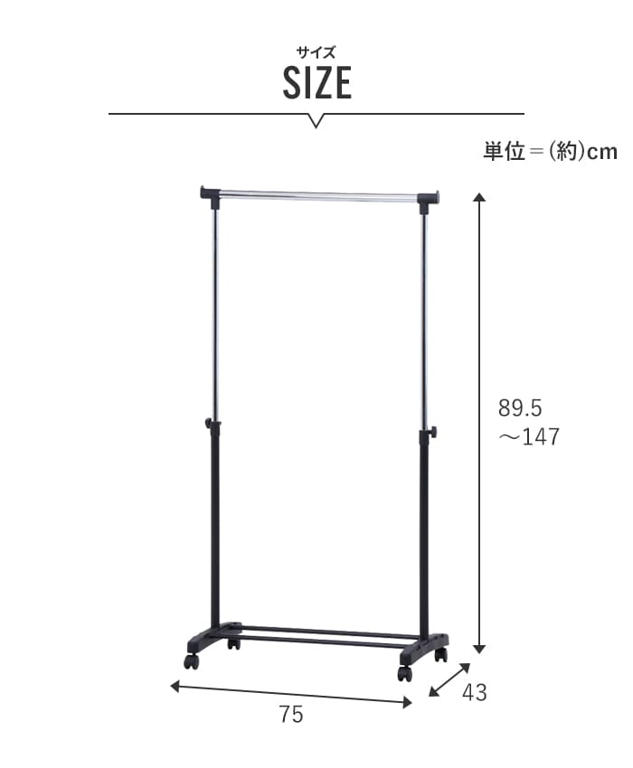 ・上下に伸縮するので、ワイシャツからコートやワンピースまでムダなく収納。