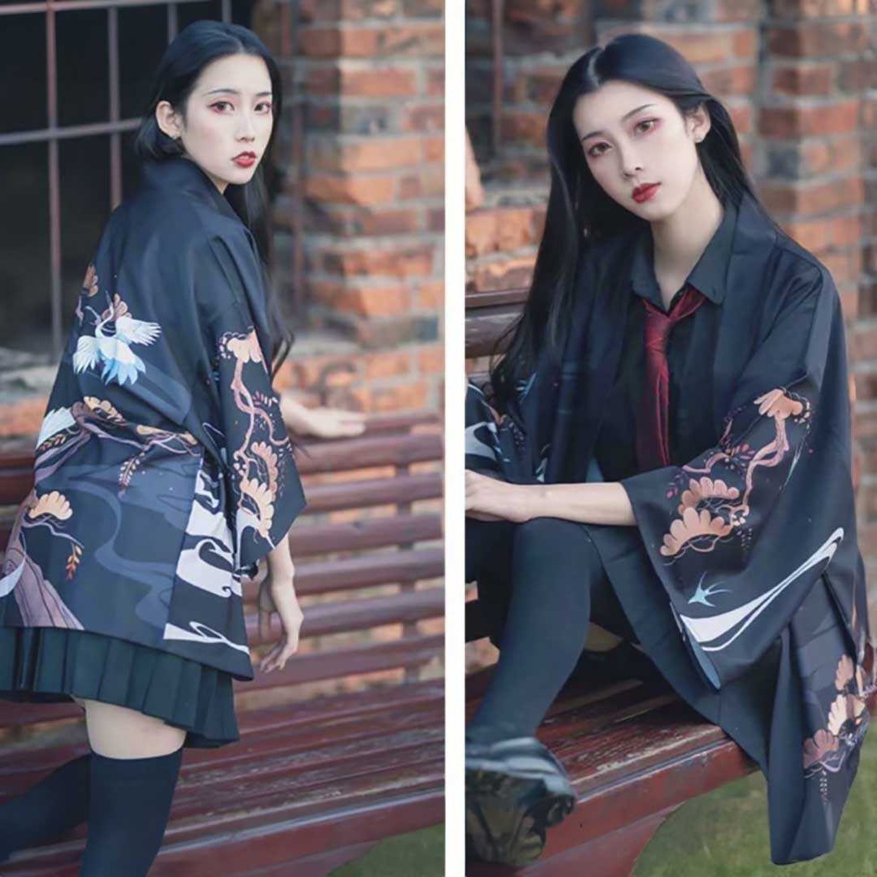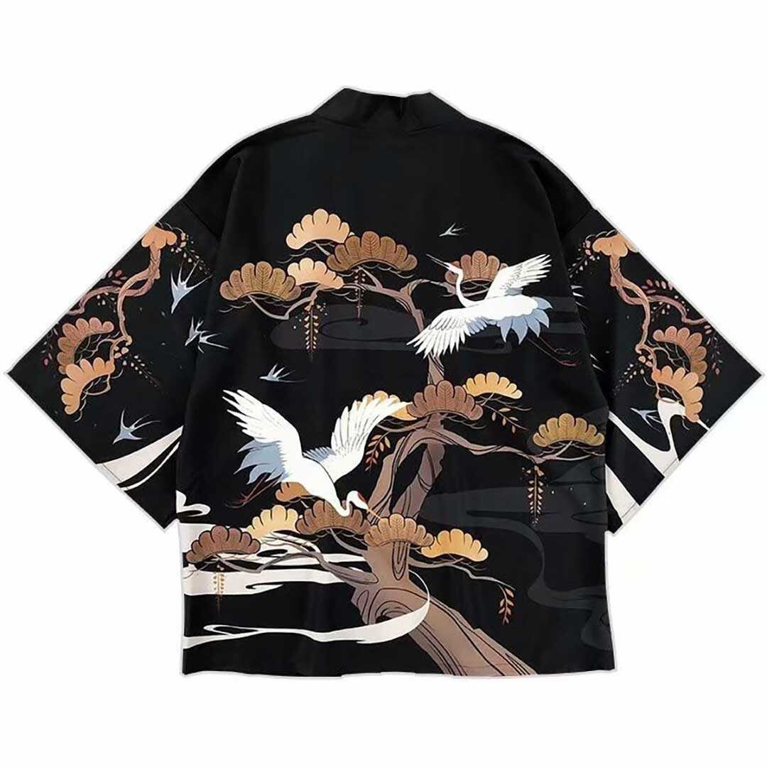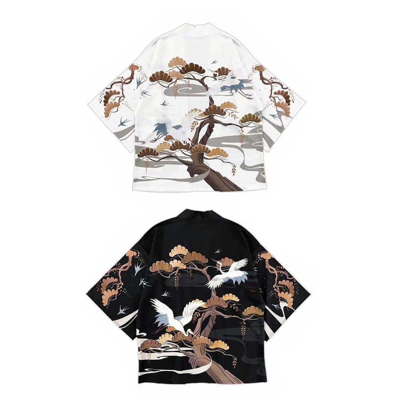 法被 松鶴 羽衣 全2カラー 夏祭り 夏恋 寺 韓国ファッション 神社 羽織り 半纏 はんてん ハッピ 長半纏