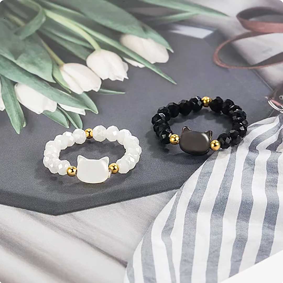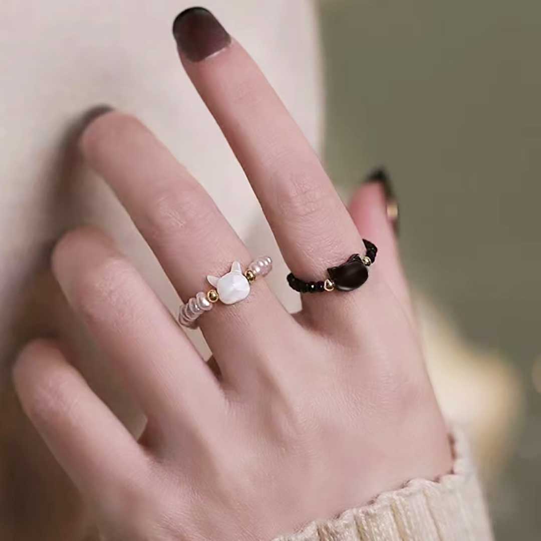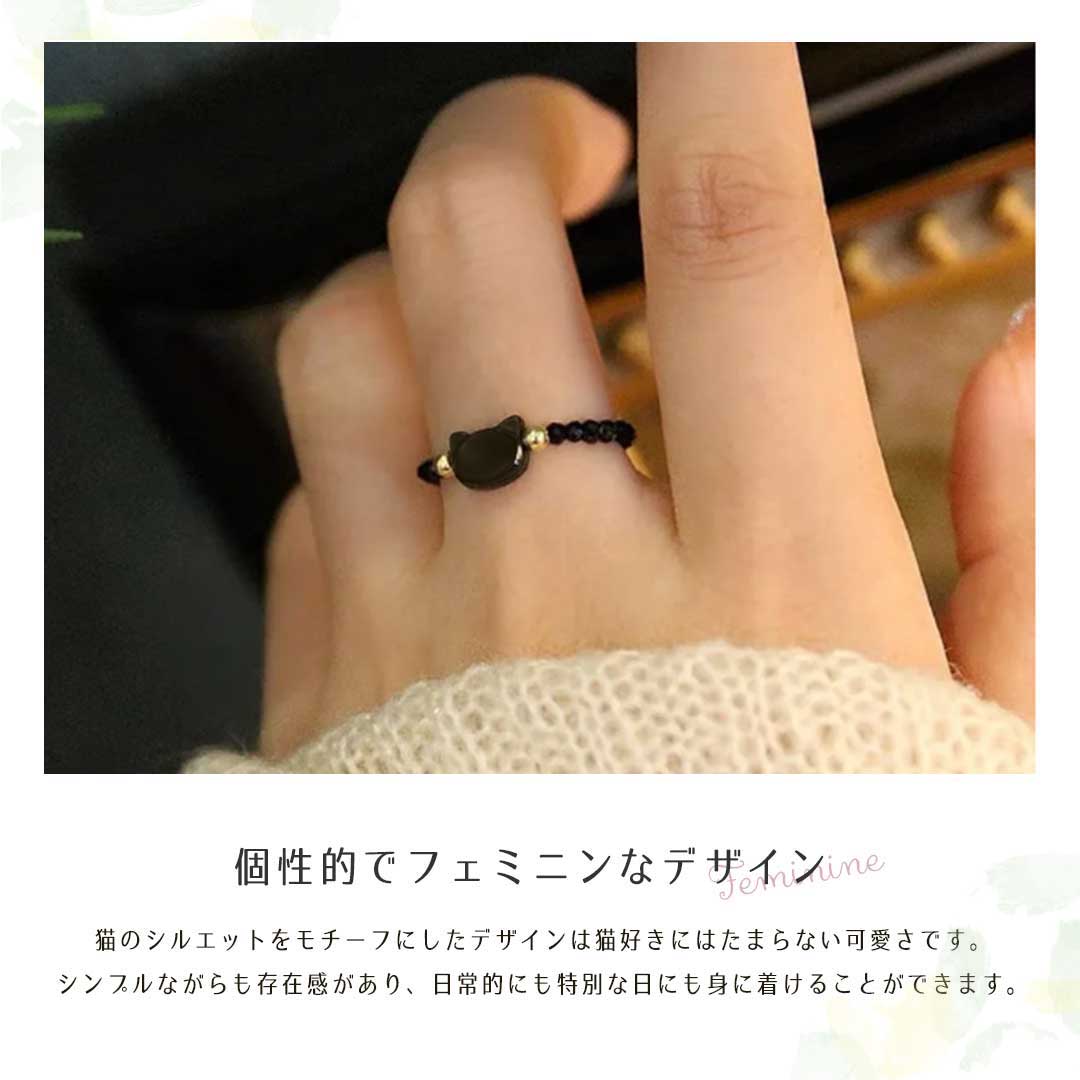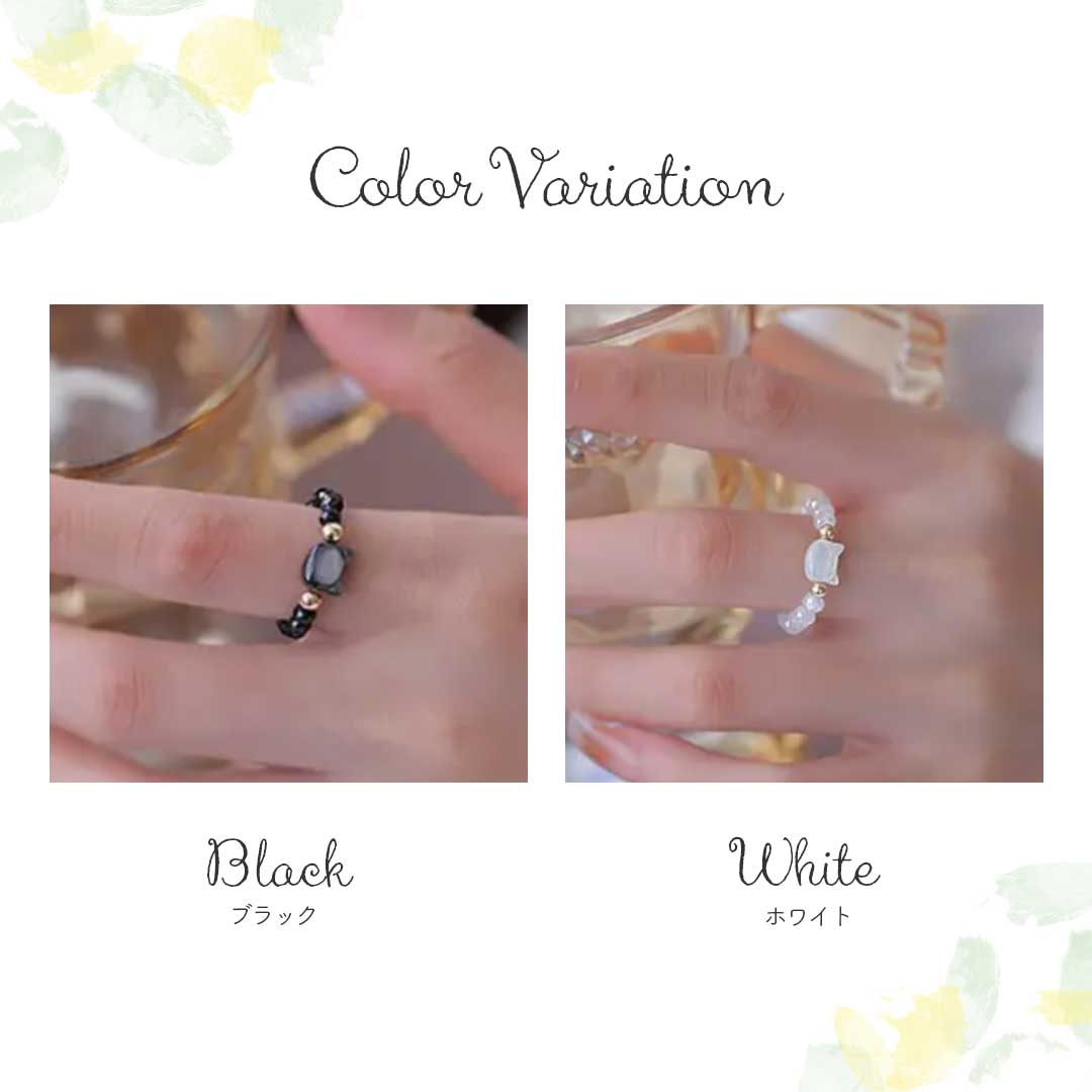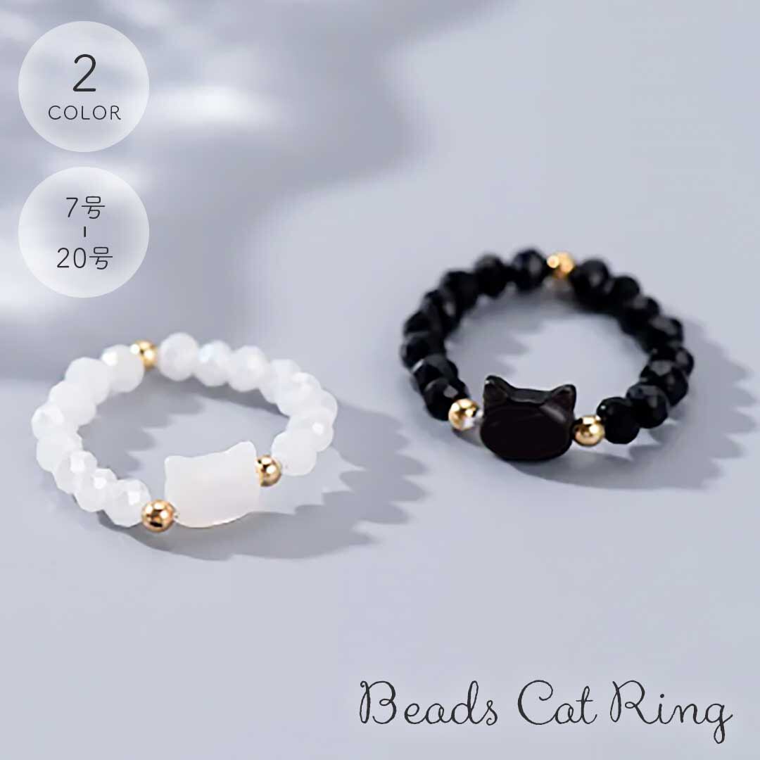 指輪 ビーズリング 猫 ブラックorホワイト ネコ アニマル CAT 指先 レディース メンズ 男女兼用