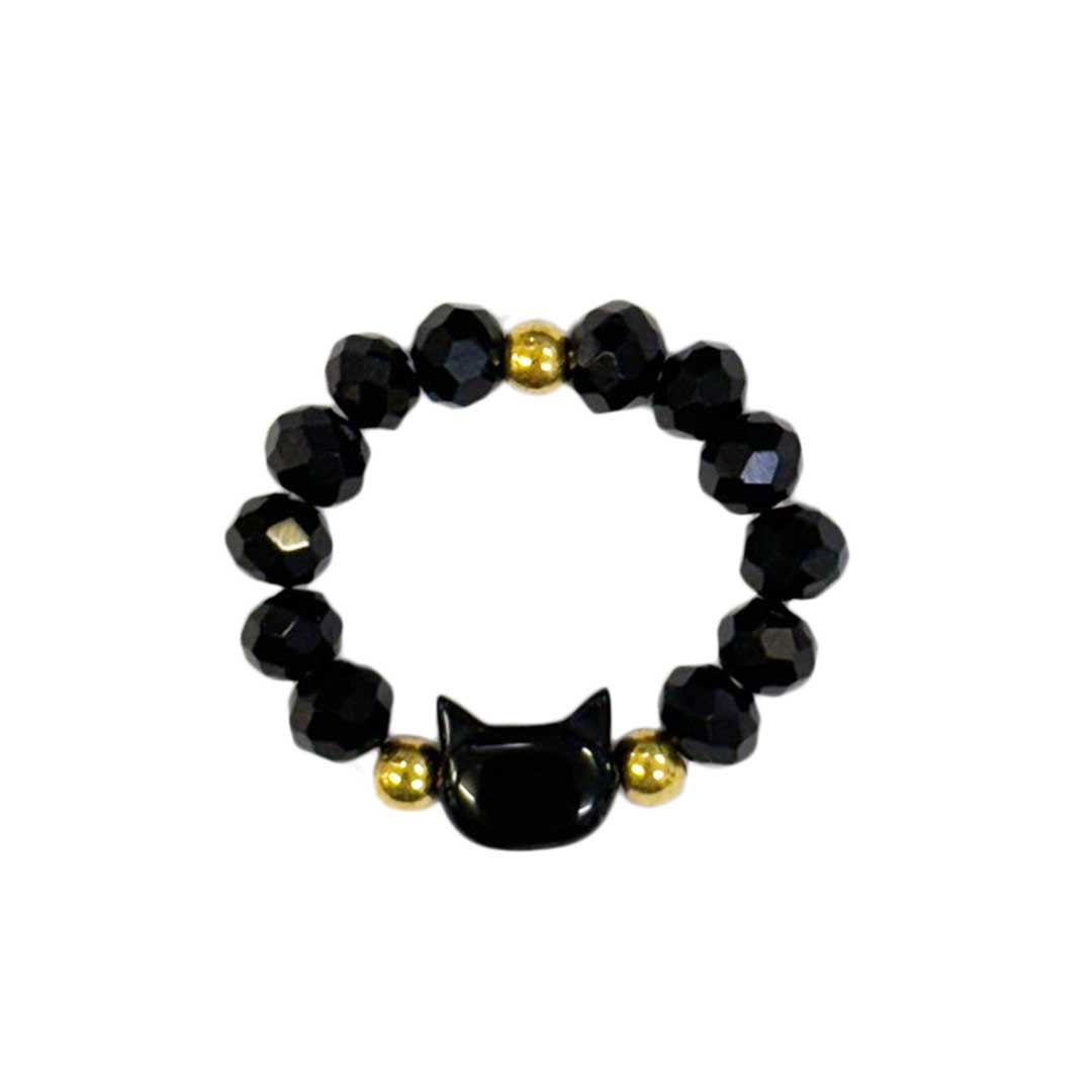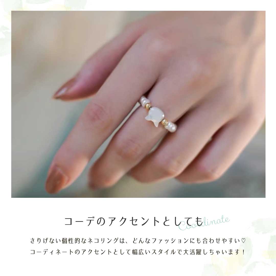 シンプルで猫デザインされたビーズがかわいいリングです。