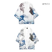 出世や幸運で知られる鯉と龍がプリントされ、さらに下にある浮世絵が日本らしさを演出した法被となります。