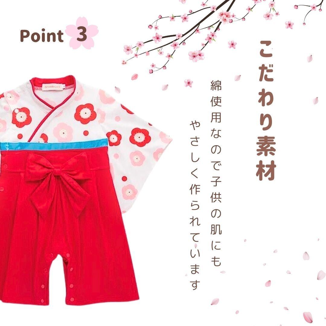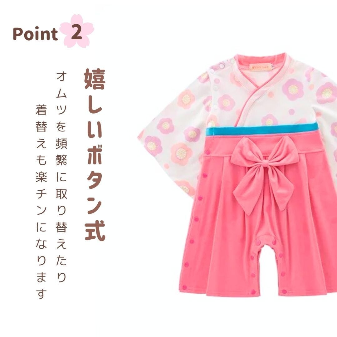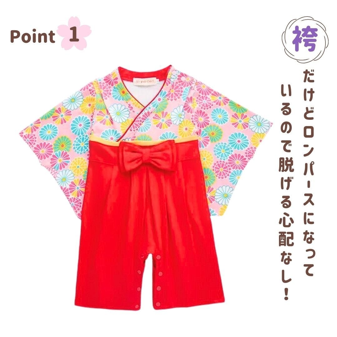 とっても華やかな袴ロンパースは、こどもの日やひな祭り、お食い初め、七五三などの特別な行事やイベントで使用するのにぴったりなアイテムです