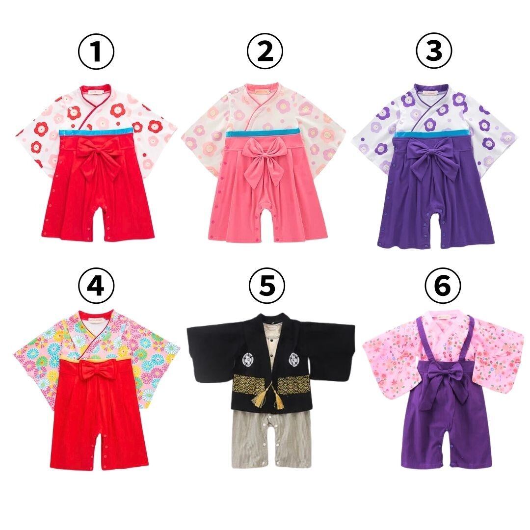 ベビー服 ベビー袴 ロンパース 全6種類 4サイズ 上下セット 着物 袴風ロンパース 新生児 赤ちゃん