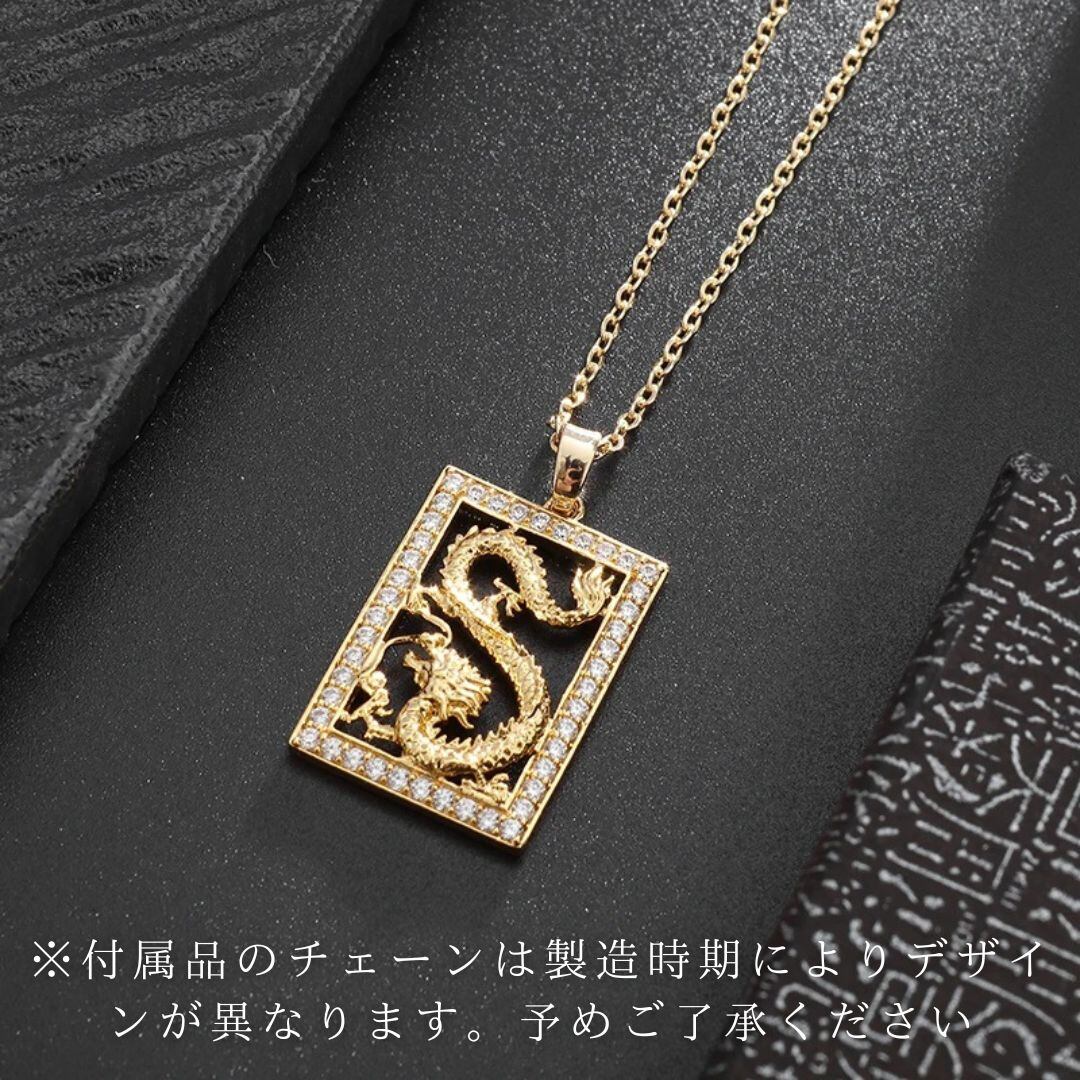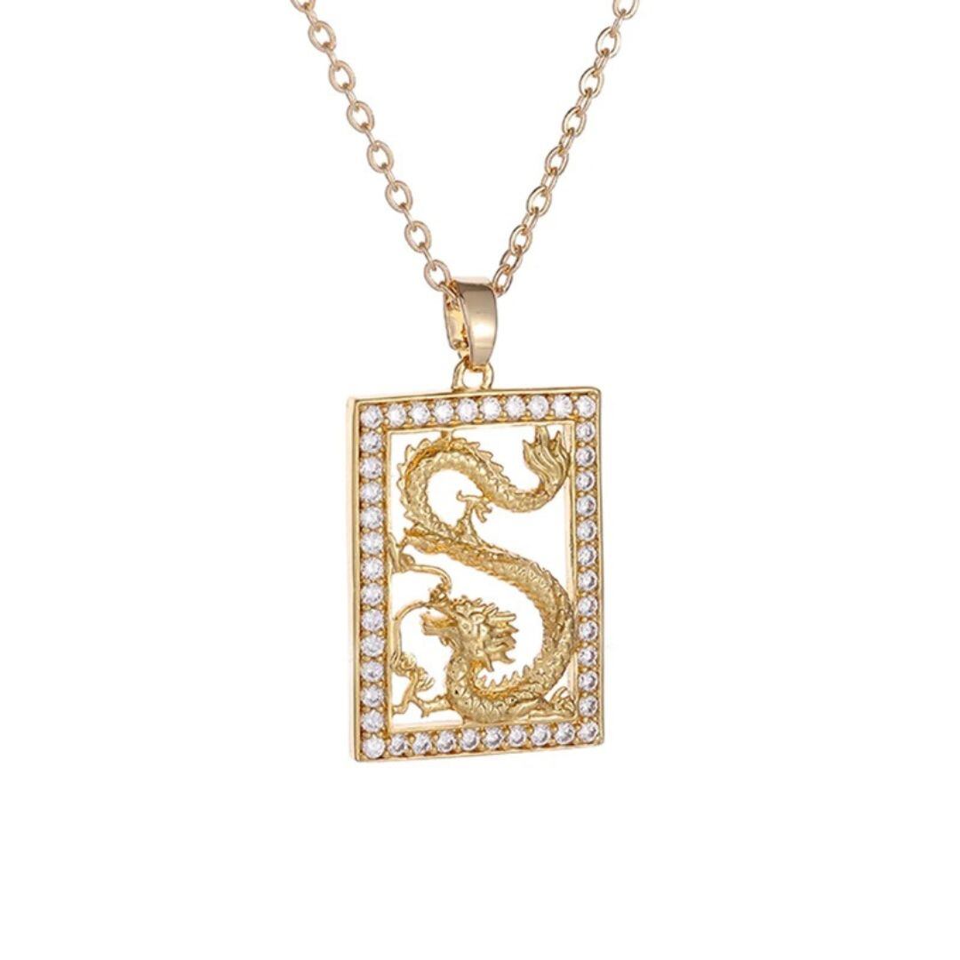ネックレス 龍輝煌 四角枠に入る龍 四角ゴールド ジルコニア ラインストーン 龍 アクセサリー