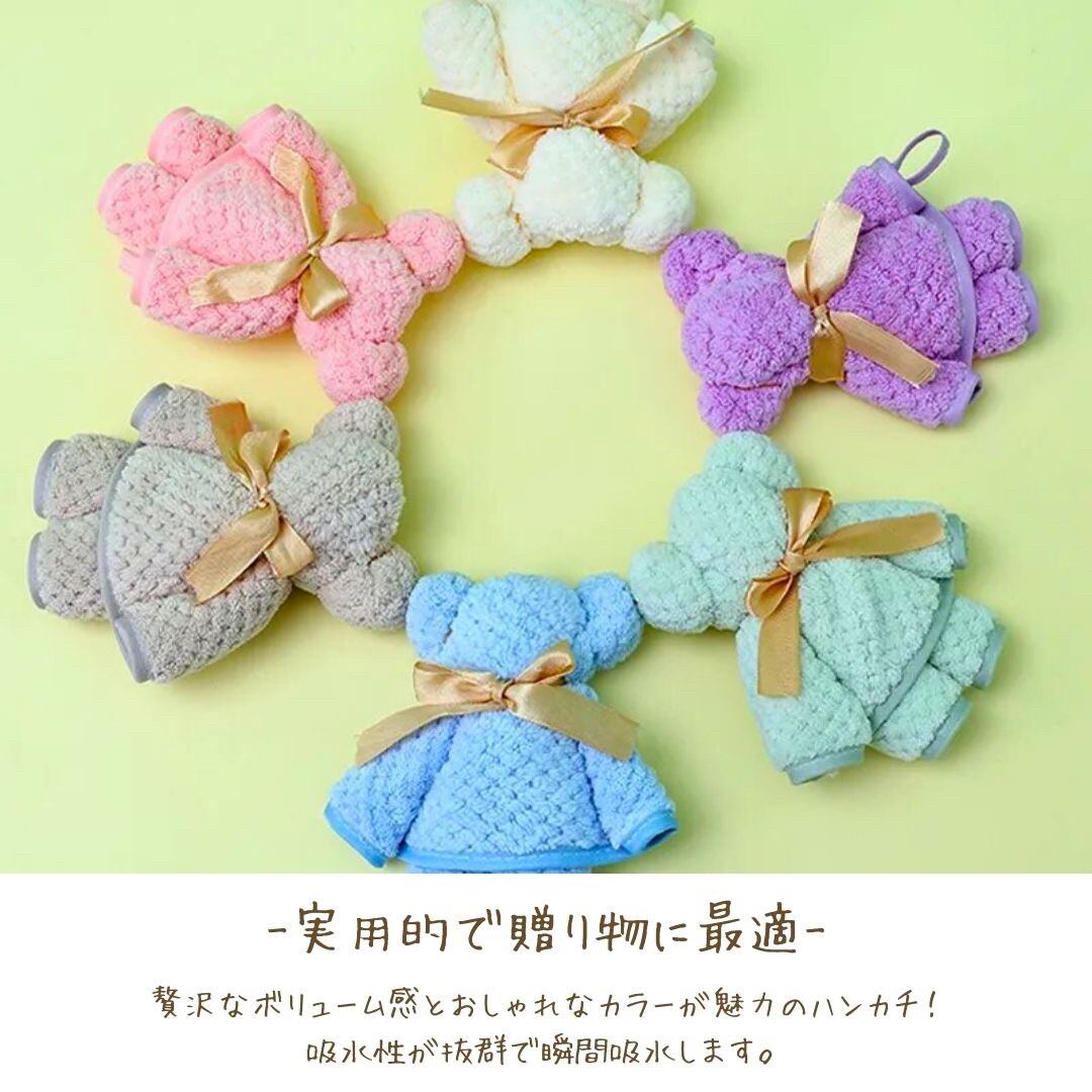 プチギフト用 クマ 熊 ハンカチ 専用袋付き 全6カラー 厚手 ベア ふわふわ 柔らかい キッチン 風呂 無地