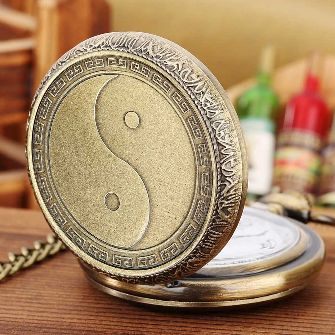 懐中時計 ブロンズ 陰と陽 ヴィンテージ アンティーク風 チェーン付き