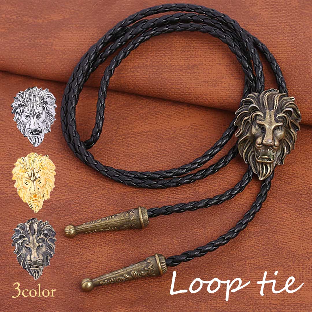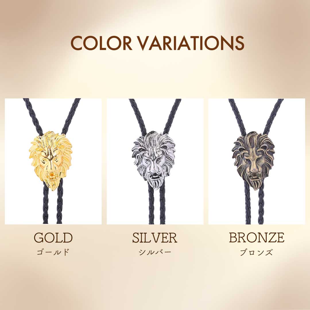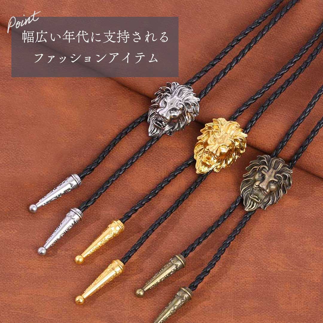 ネクタイ ループタイ ライオン 百獣の王 全3色 ペンダント ジュエリー アクセサリー ネックレス デート