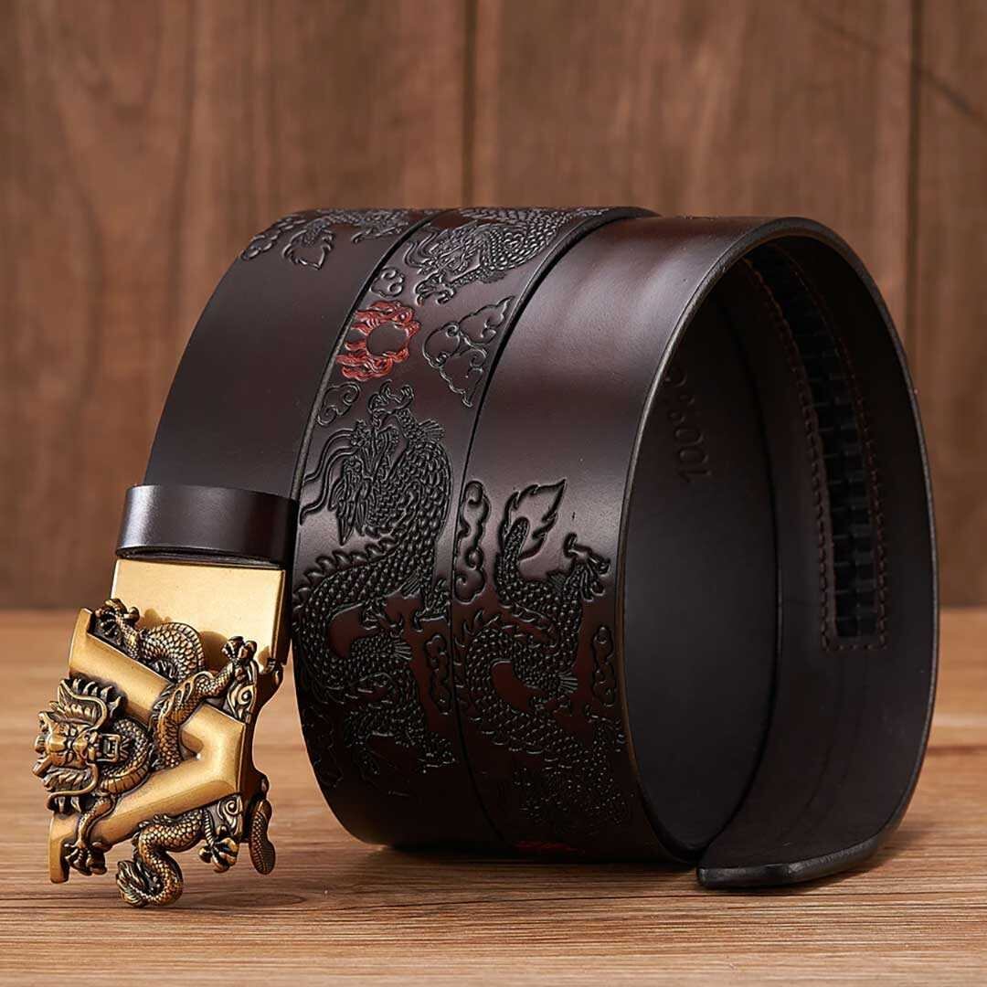 ベルト 龍 ーVer3ー 120cm 選べるカラー 穴なし スライドベルト 革 合金 メンズ