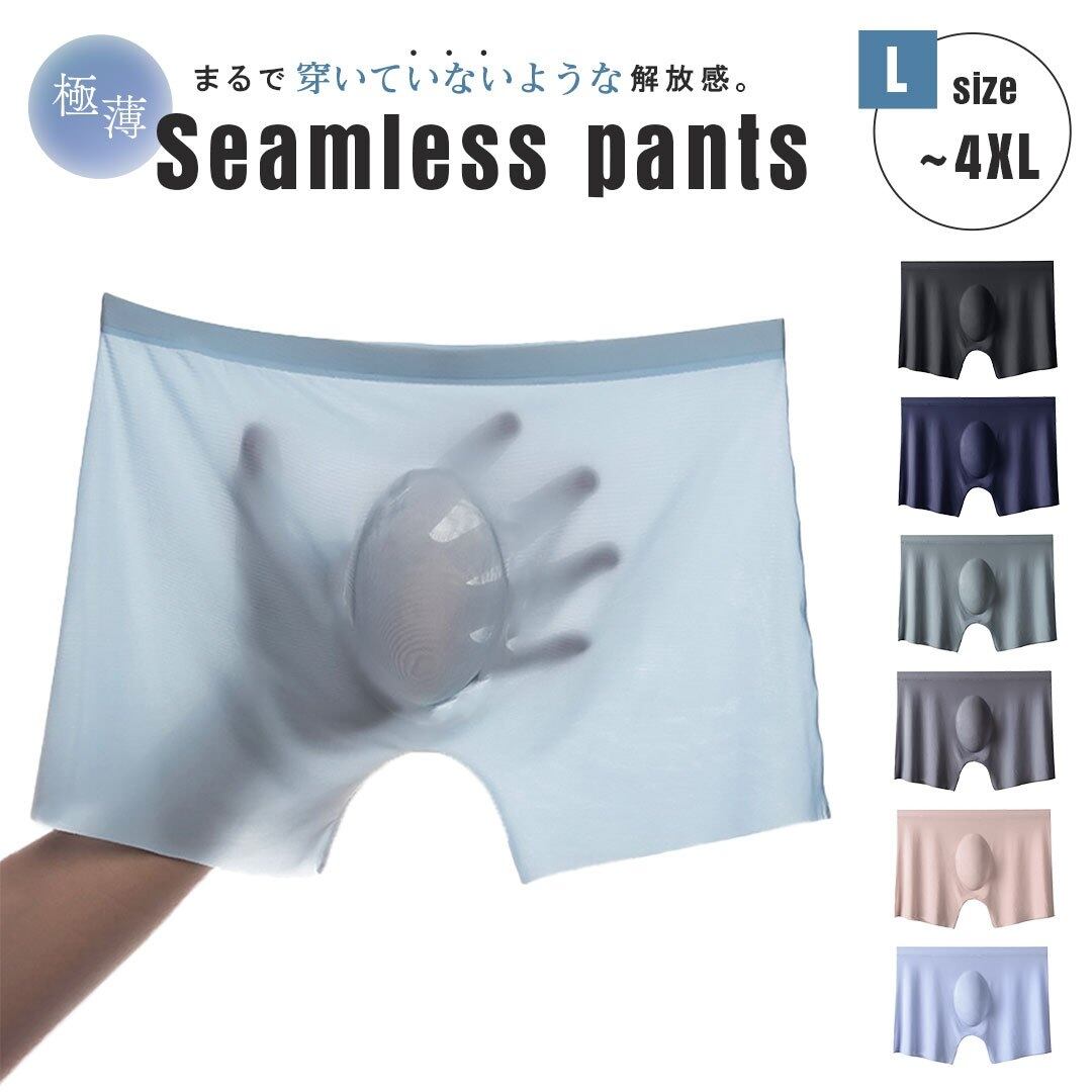 メンズパンツ コットン シームレス 1枚 2XLサイズ or 3XLサイズ 6色カラー 極薄 ボクサーパンツ 前閉じ