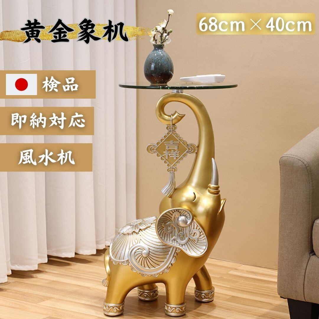 テーブル 置物 ゾウ ゴールド エレファント 特大サイズ ガラステーブル付き サイドテーブル 高さ
