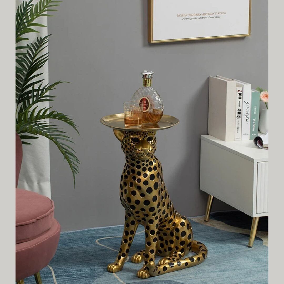 テーブル 置物 ヒョウ ゴールド 豹 特大サイズ 金属テーブル付き サイドテーブル 高さ 布団テーブルヒョウサイズ