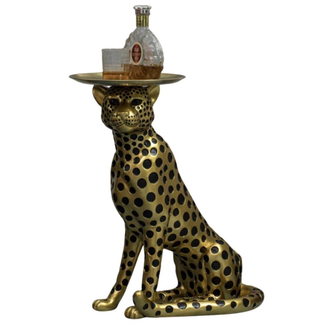 テーブル 置物 ヒョウ ゴールド 豹 特大サイズ 金属テーブル付き サイドテーブル