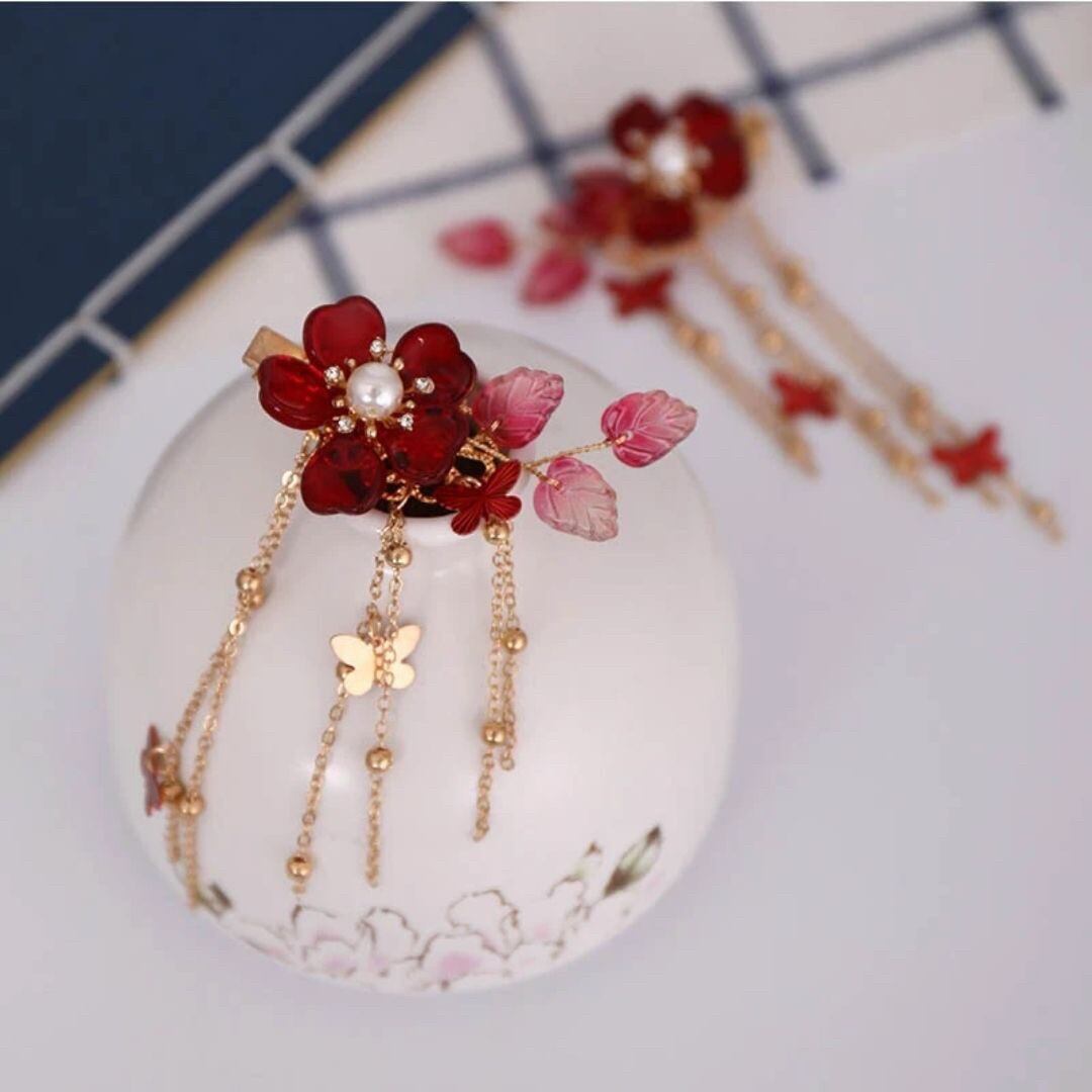 ヘアアクセサリー クリスタルフラワー 朱花 [2個セット] ヘアピン ピンタイプ お花 花びら