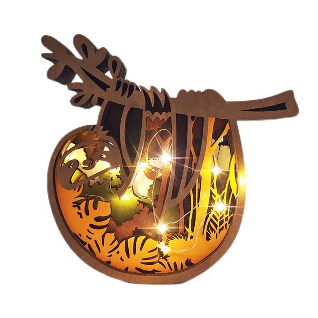インテリア 木製フレーム 蝶々or猫orナマケモノ LED 置物 木製 オブジェ オーナメント Birthday