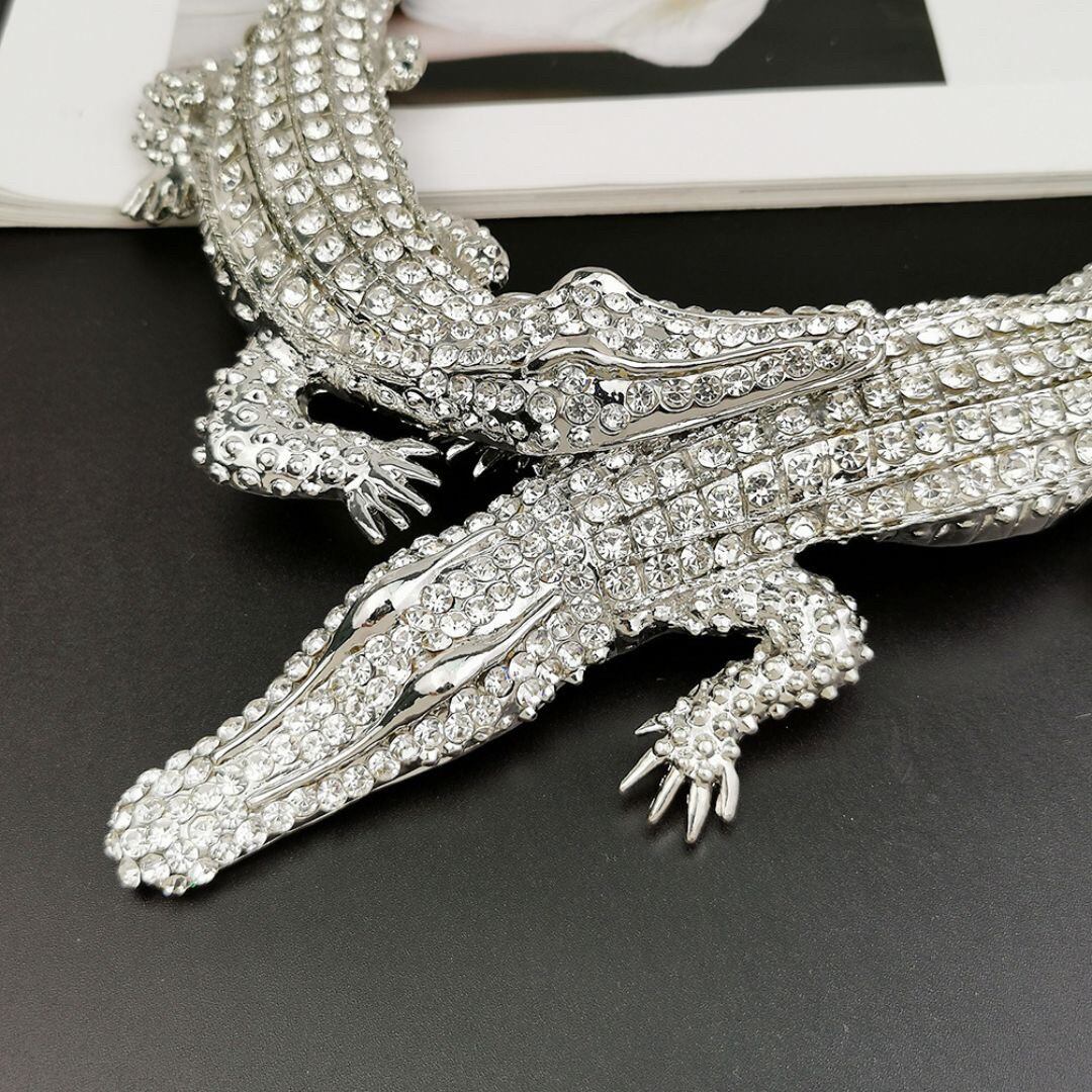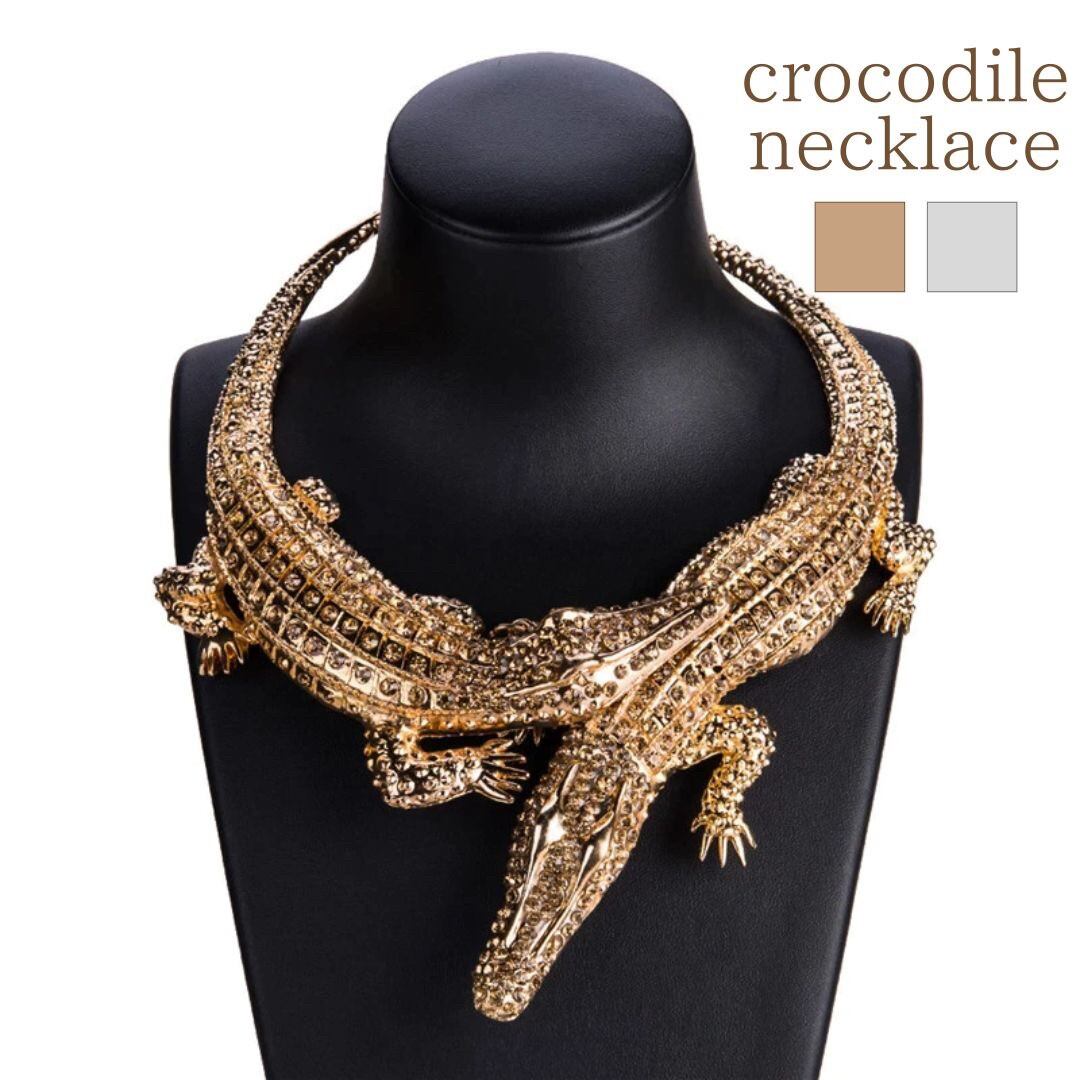 ネックレス 2匹のワニ ゴールドorシルバー 首噛み ジルコニア アクセサリー Jewel ジュエリーワニ全体サイズ縦約21cm×横約17cm×厚さ約1.5cm