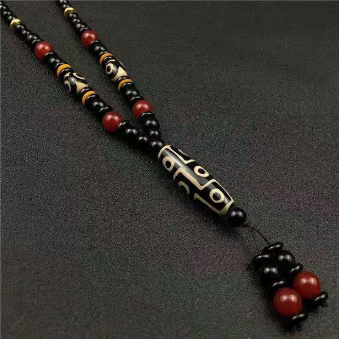 チベット仏教のマラと呼ばれる天珠ネックレスは、108個の小さな珠を連ねたもので、祈りや瞑想を行う際に使用されます。