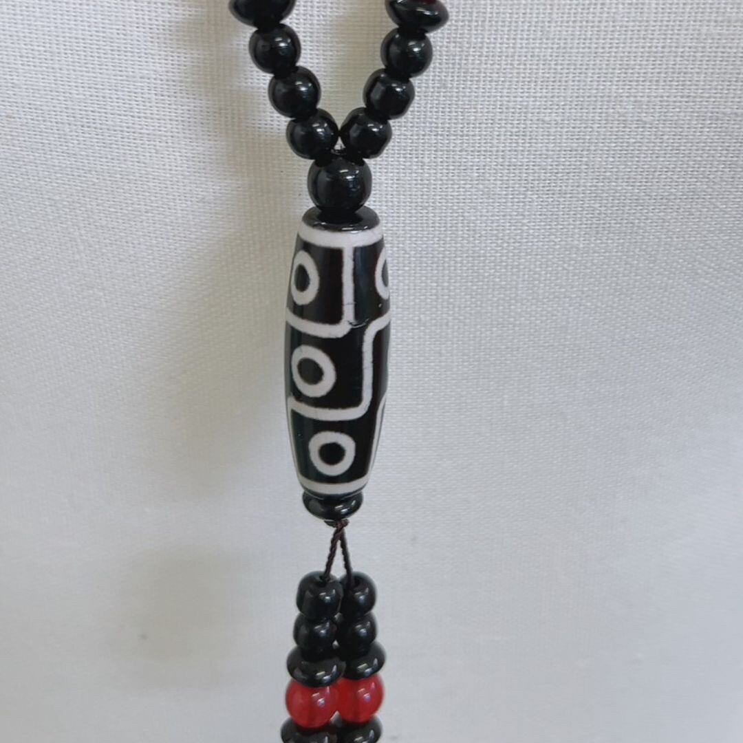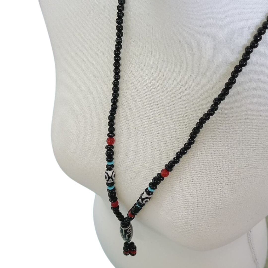 この天珠ネックレスは、身を守るために着用されることが多く、マラの色や素材によって、身体や心を癒す、福徳を増幅するなどの効果があるとされています。