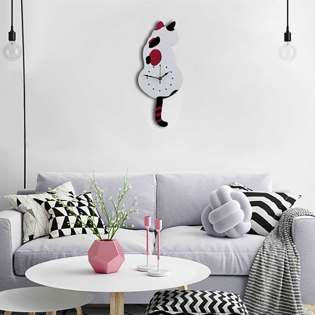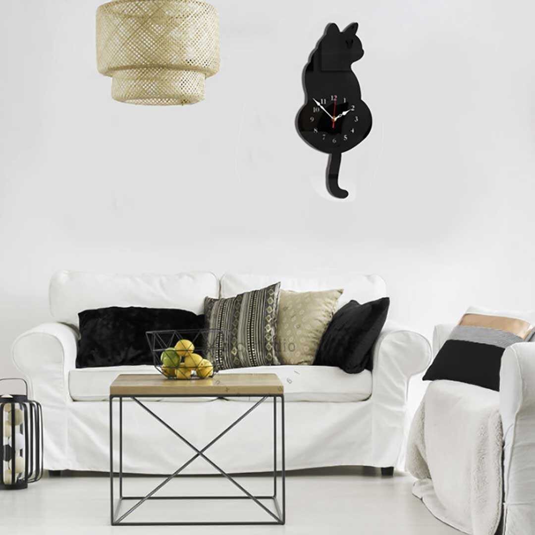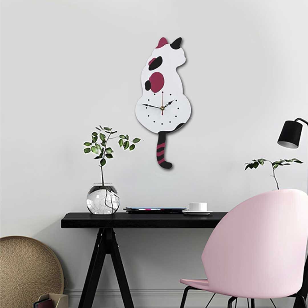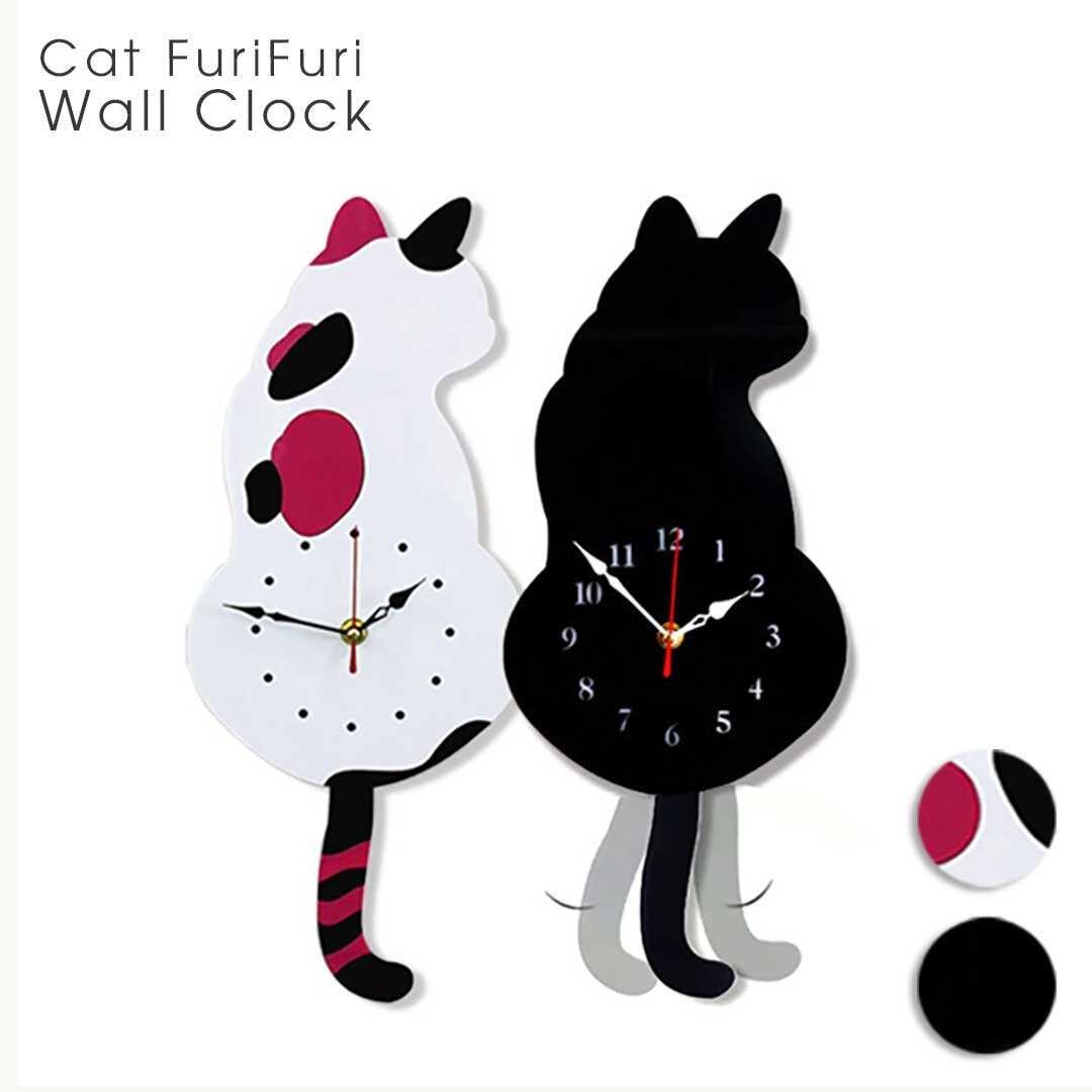 壁掛け時計 猫 尻尾 ふりふり 振り子時計 ブラックorホワイト インテリア 贈り物 新築祝い 引越し祝い