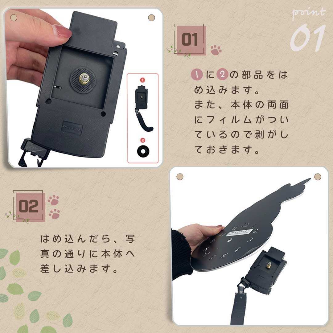 壁掛け時計 猫 尻尾 ふりふり 振り子時計 ブラックorホワイト インテリア 贈り物 新築祝い 引越し祝いサイズ 縦約42cm(尻尾含め)x横約17.5cm