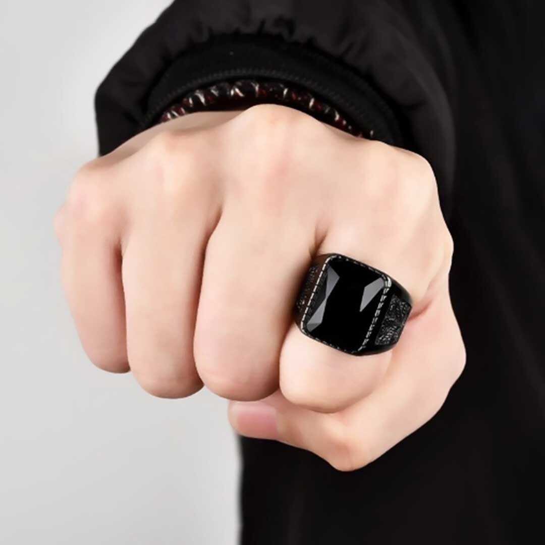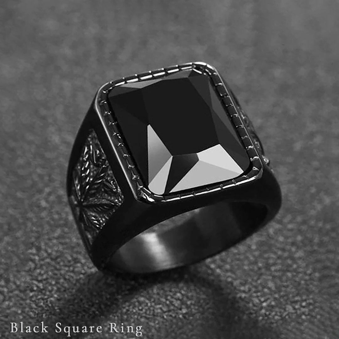 リング スクエア ブラックストーン 指輪 アクセサリー ヒップホップ ジュエリー
