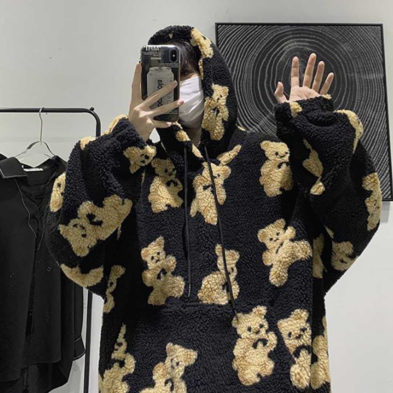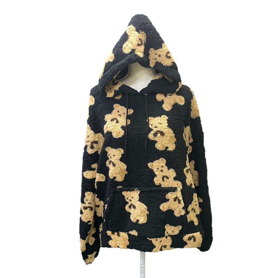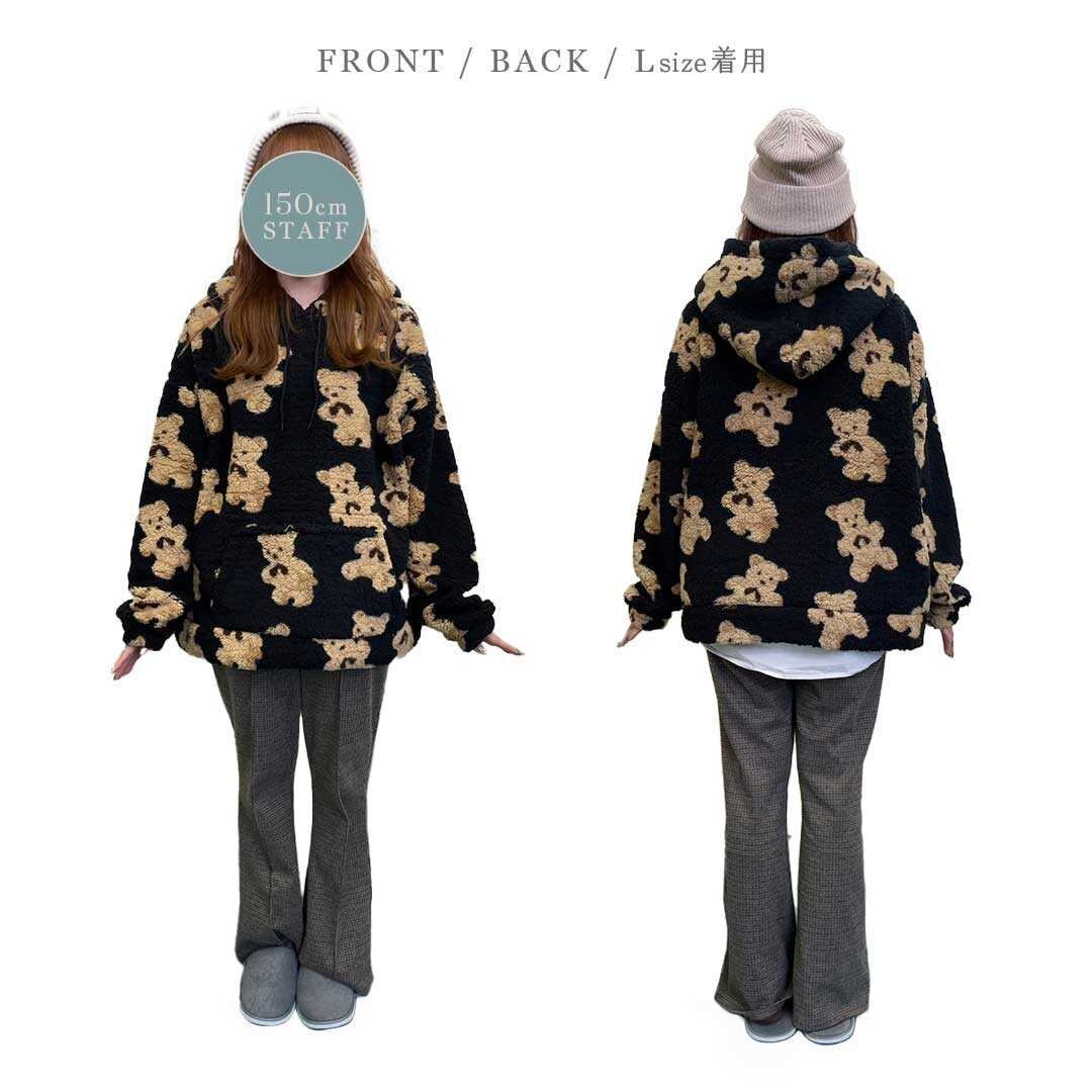 [在庫限り] パーカー テディベア モコモコ クマ ブラック トップス プルオーバー