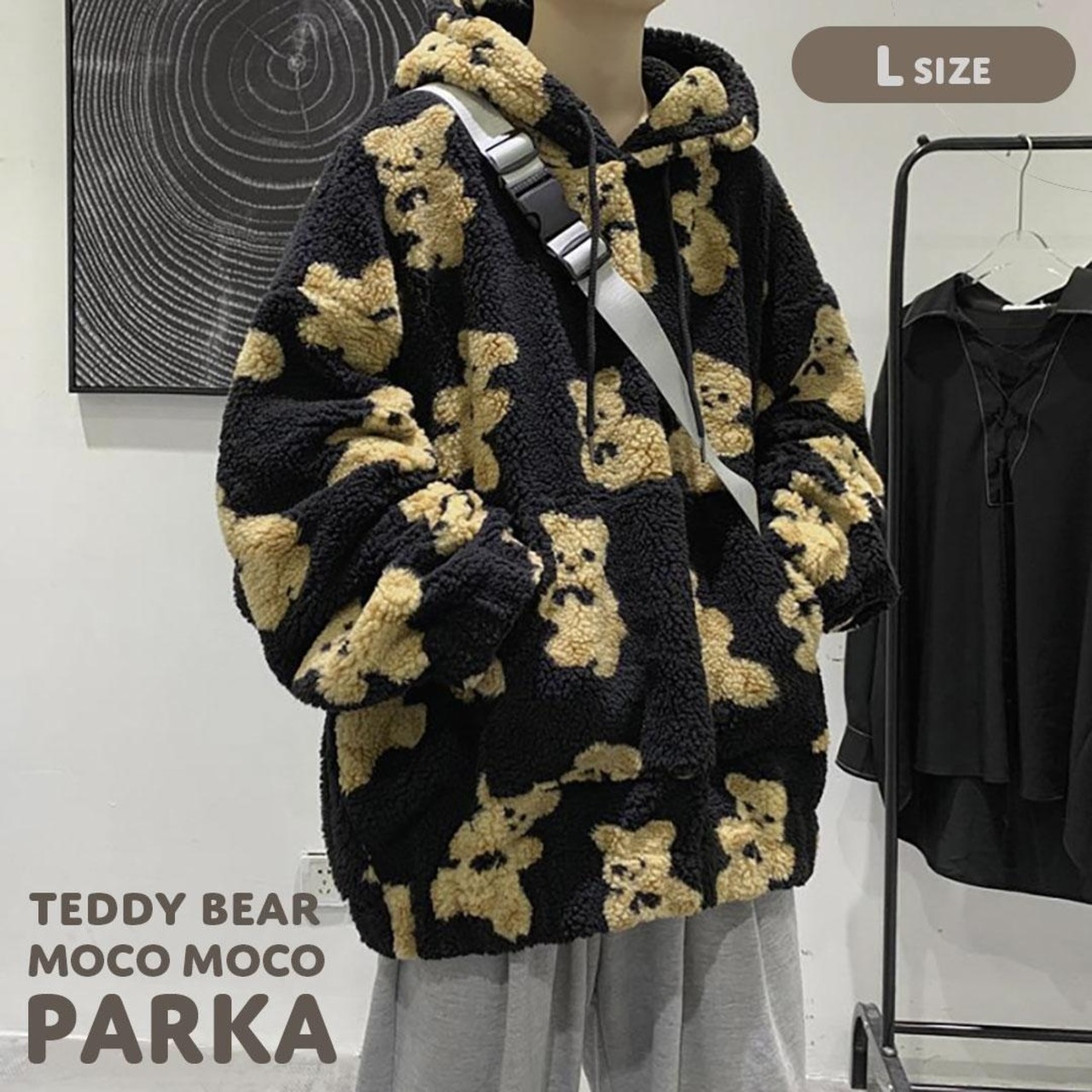 パーカー テディベア モコモコ クマ ブラック トップス プルオーバーLサイズ
