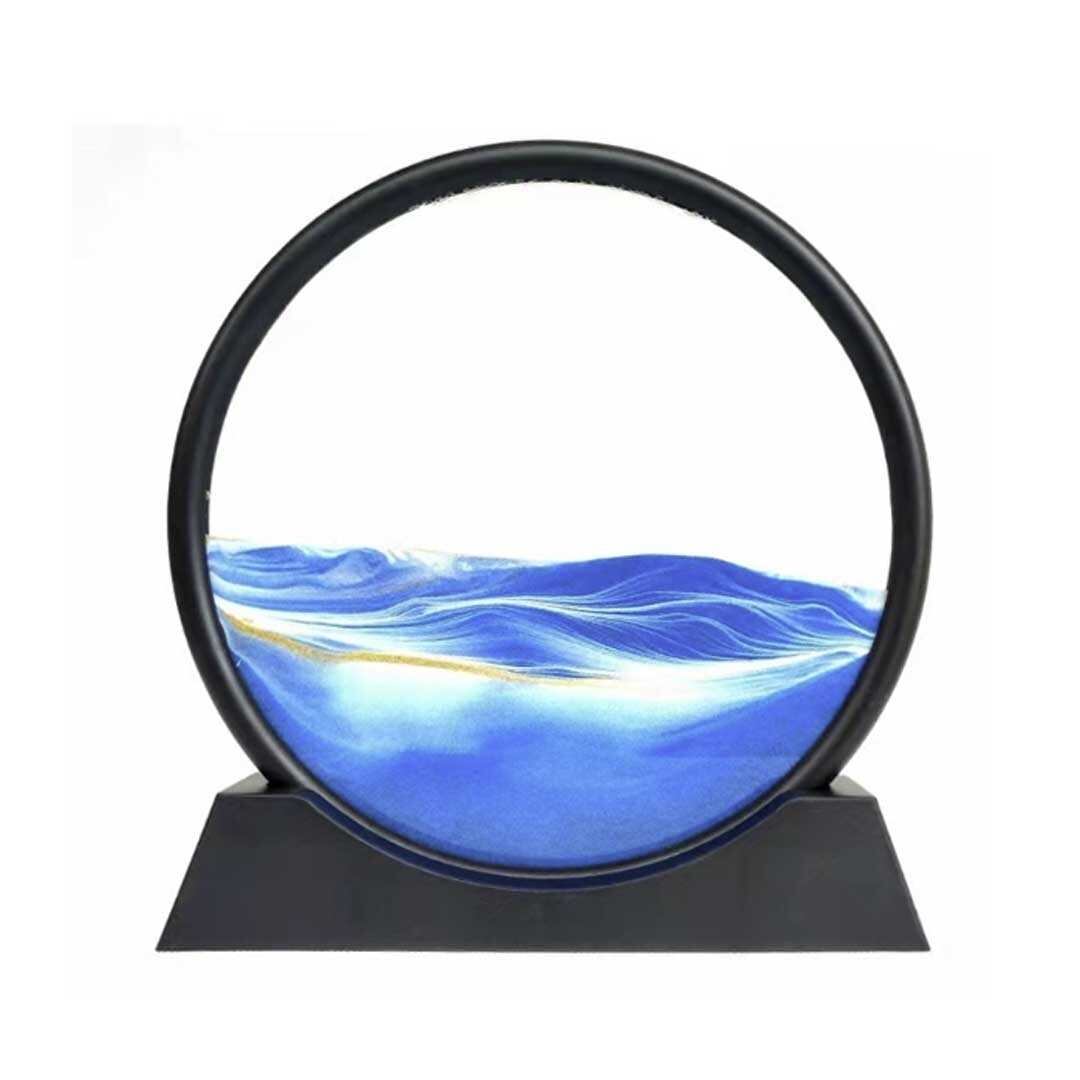インテリア ミニサンドピクチャー 丸型 ブルー 落ちる砂 アンティーク