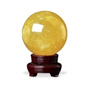 水晶球 シトリン 8cm 木製 台座付き 風水グッズ