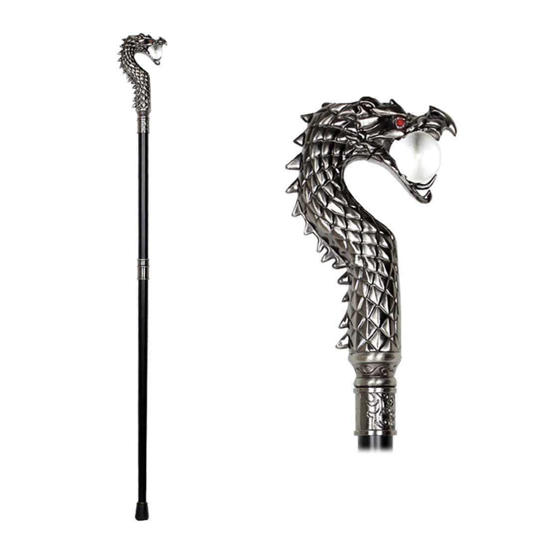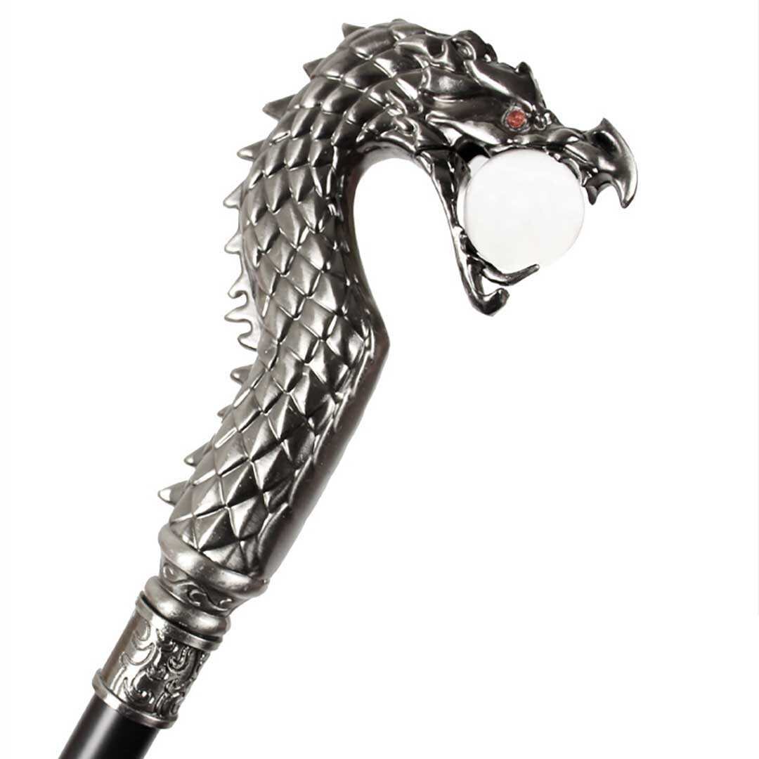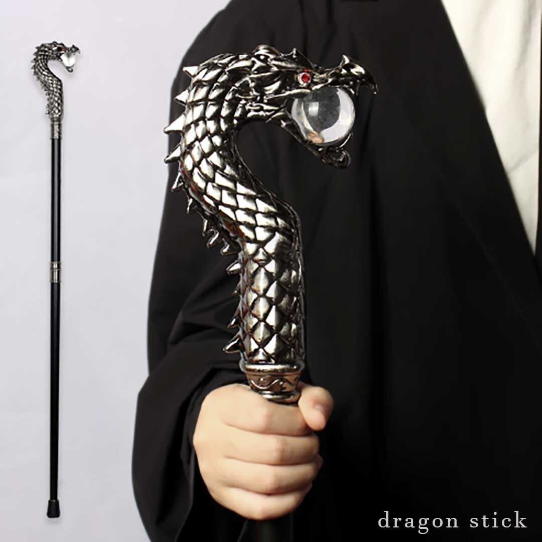 杖 龍 水晶を咥える龍 シルバー ステッキ
