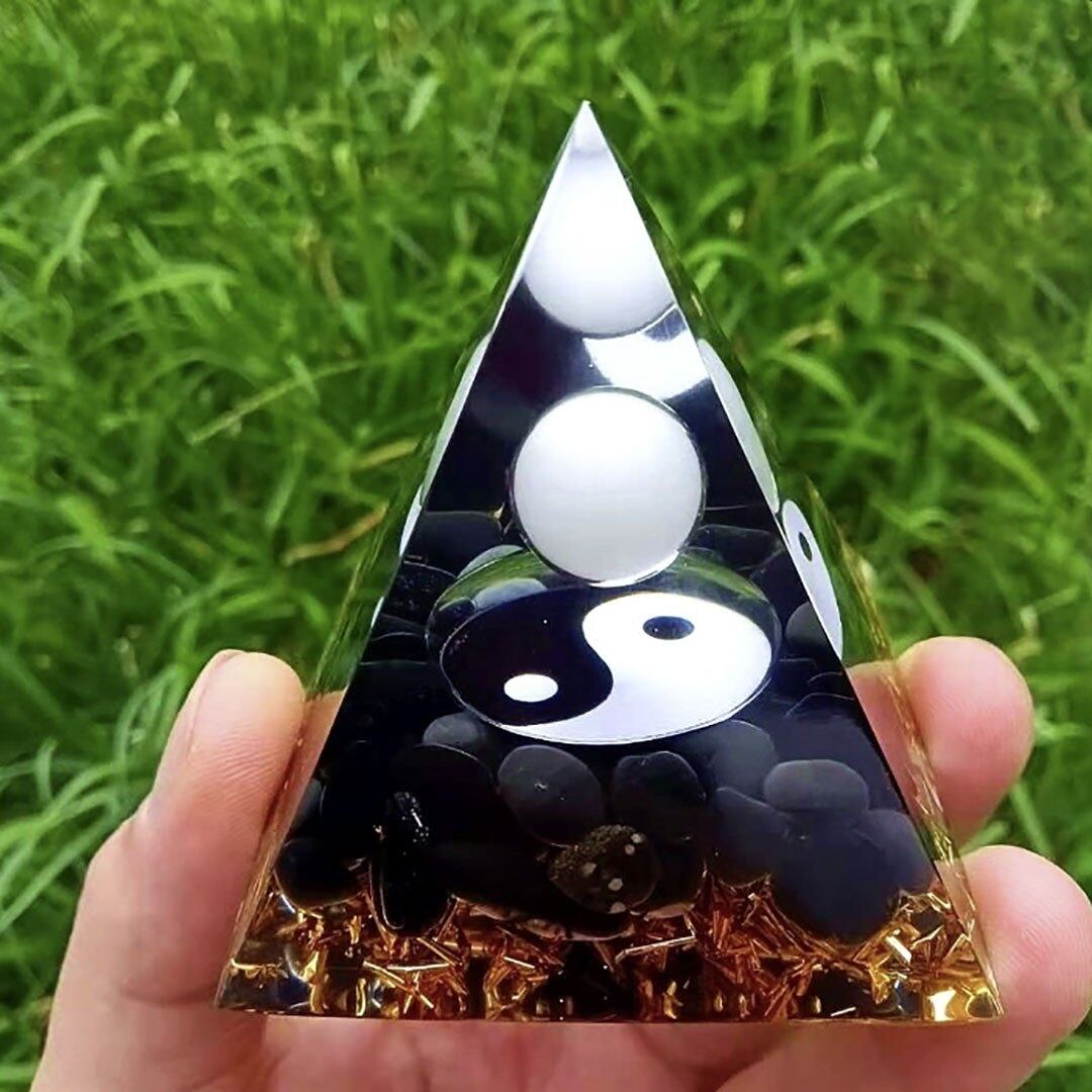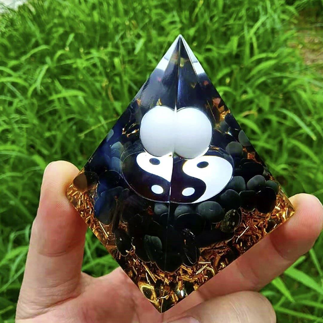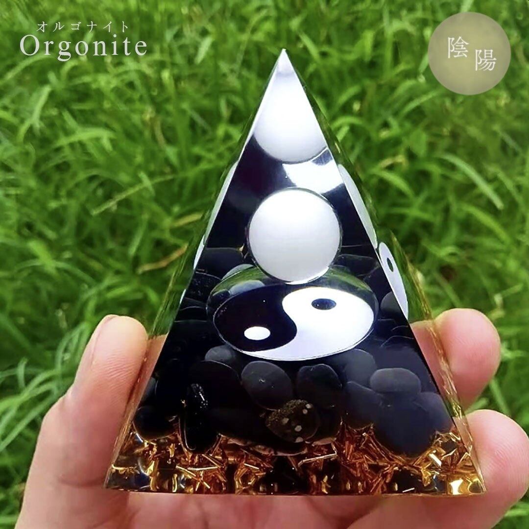 オルゴナイト 陰陽 白黒 球 ストーン チャクラ 幸運 パワー 石 有機物