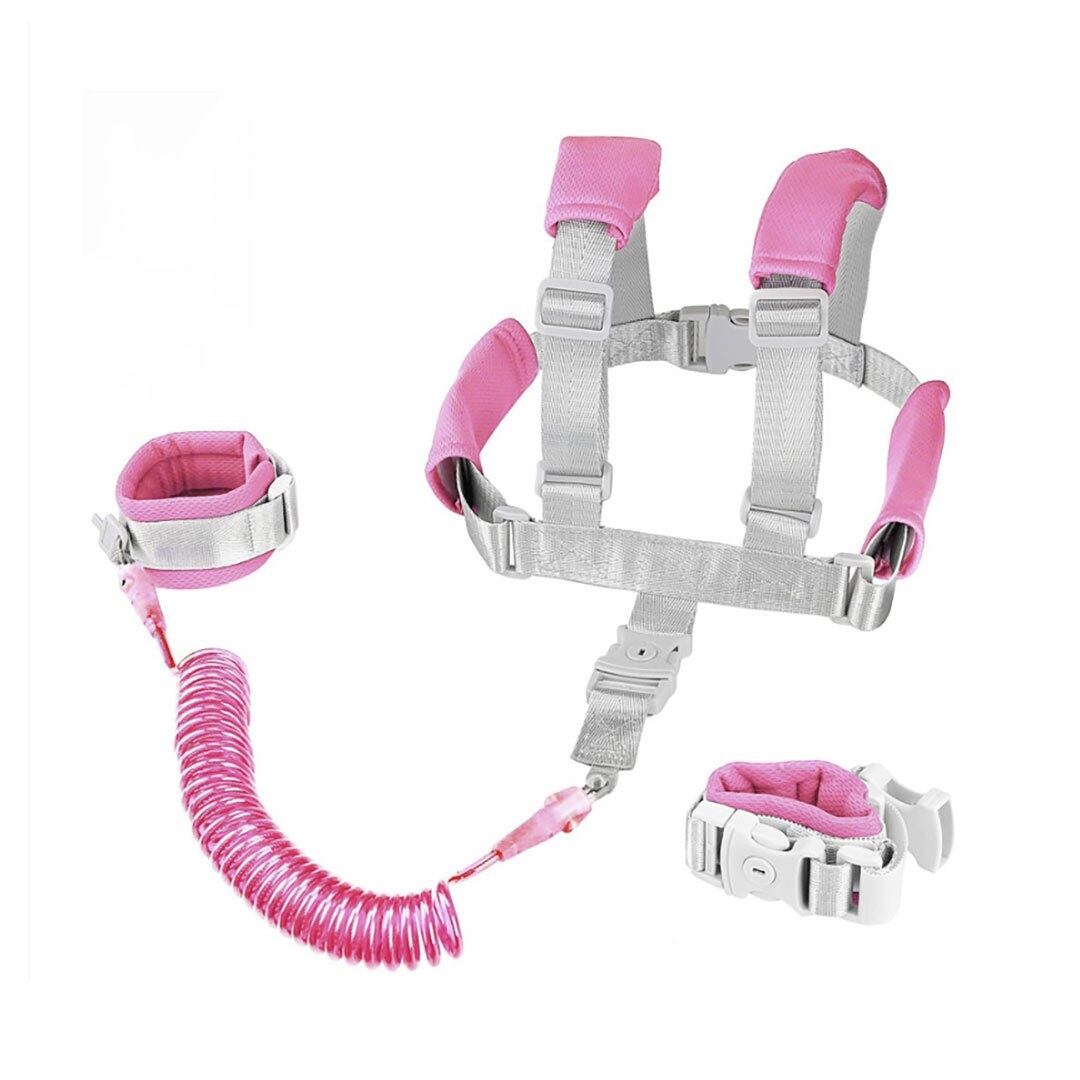 保護者と子どもの手首に装着するタイプの迷子紐で2way仕様ですのでハーネスも付属しております。