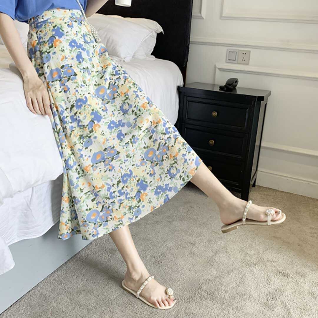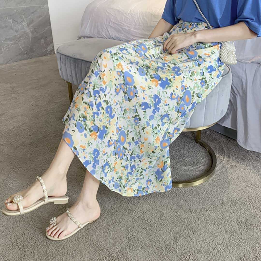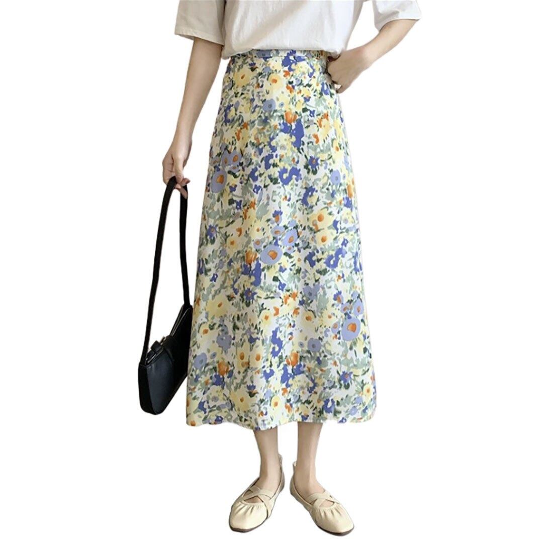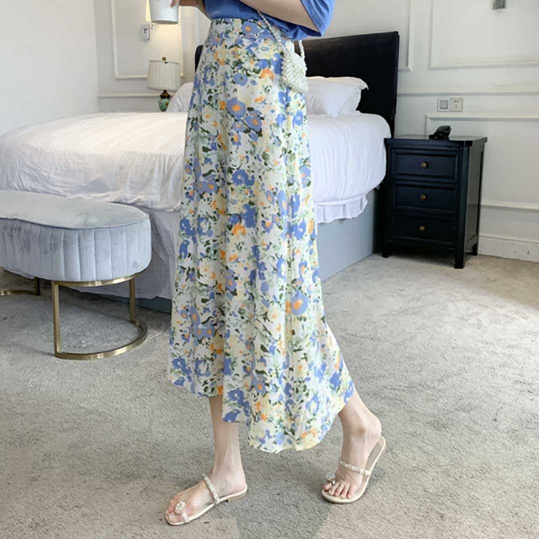 [在庫限り] スカート 花柄ロング 青い花 韓国ファッション ロング丈 マキシ丈