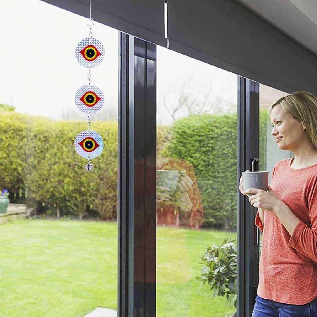 鳥よけ アイ 目 丸型 反射板 2個セット 吊り下げ ベランダ 鈴 ベル