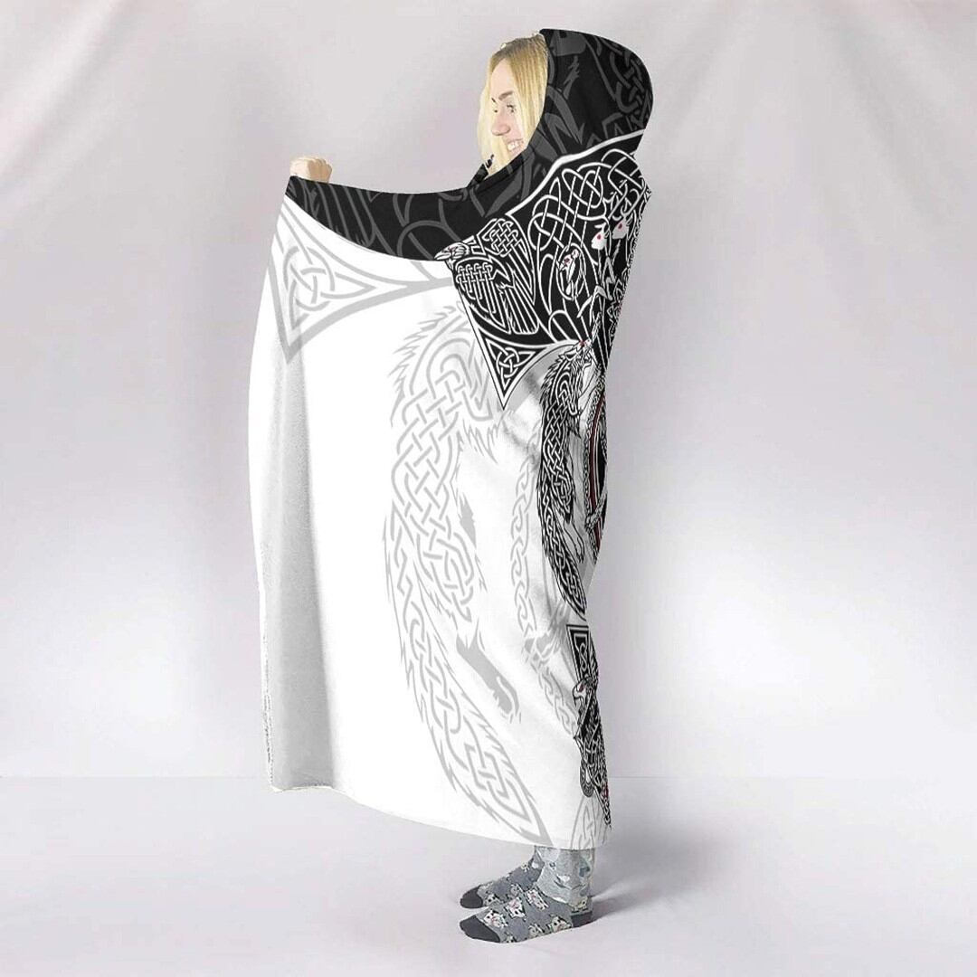 [在庫限り]ブランケット フード付き 裏起毛 狼 ビッグシルエット