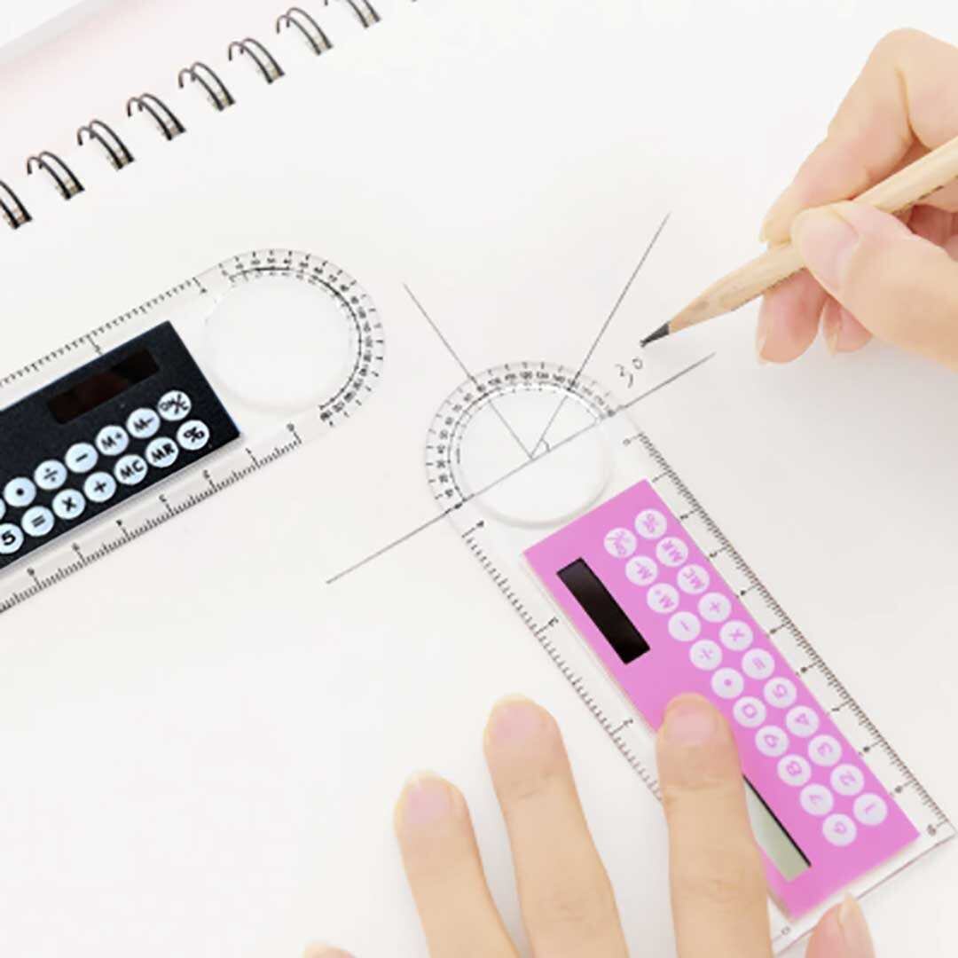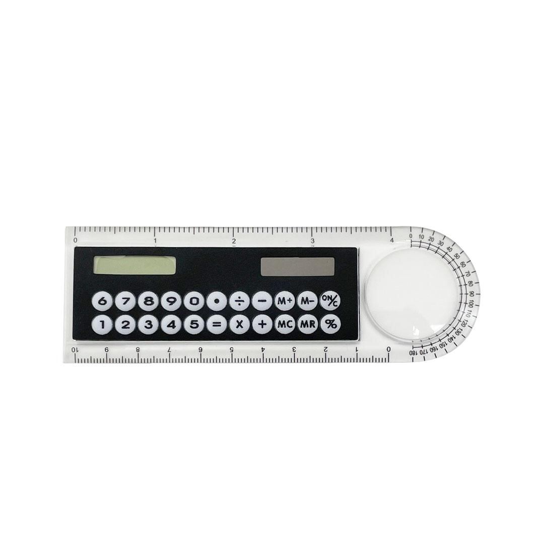 定規付電卓8桁素材:プラスチック色:ブラックorピンクサイズ:12.7 × 4.3cm / 5 ×1.7inありそうでなかった拡大鏡、定規、電卓、角度計、一体型の定規です。