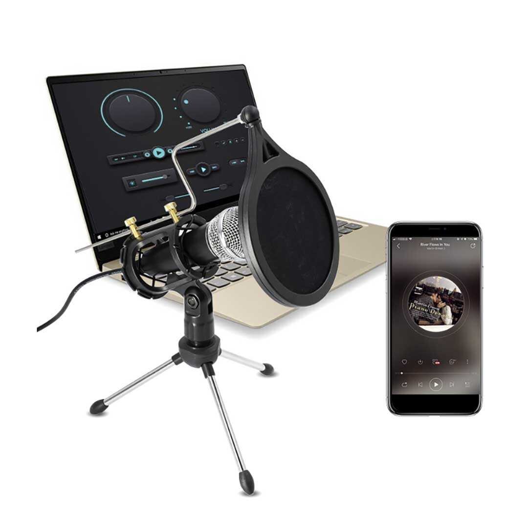 コード付きマイク三脚ショックマウントポップフィルターマイクカバー金属スティックアダプタケーブル説明書 (英語、中国語)