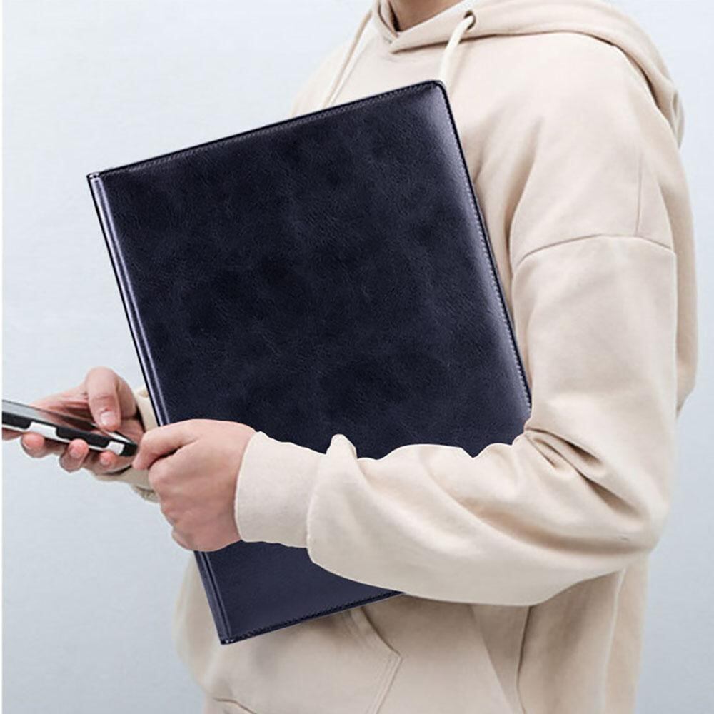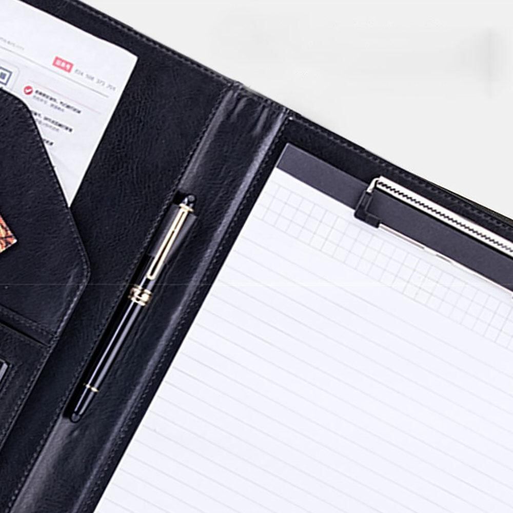 ・セミナー講師の方など前にたって仕事をする方に・商談時に印象アップしたい・ワクワクするようなアイテムを手に入れたいサイズ: 32x24.5cm素材:PUレザーカラー:ブラック重量:約450g※本バインダーの厚さ(マチ)は1.5cmとなり、それ以上厚いモノを収納するとバインダーが閉じにくくなります。