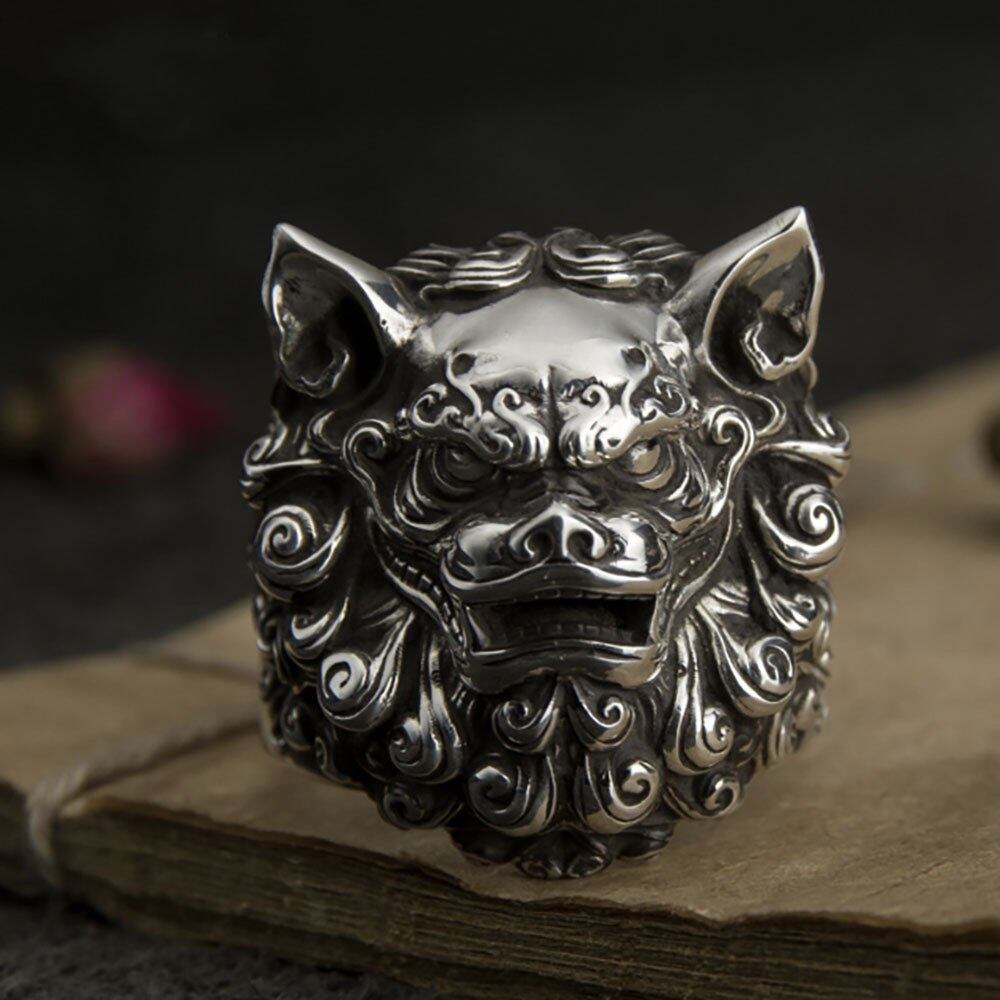 リング 狛犬 獅子 指輪 シルバーアクセサリー ヒップホ
