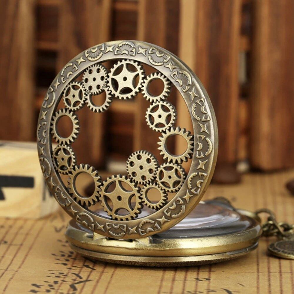 懐中時計 歯車 スチームパンク アンティーク ゴールド チェーン付